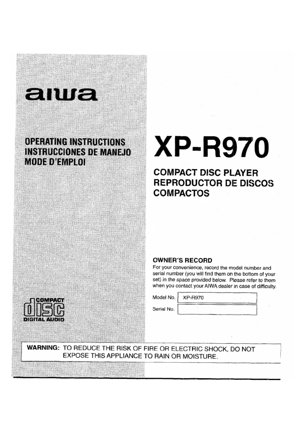 Retrouvez gratuitement la notice de l'appareil XPR970 AIWA au format PDF.