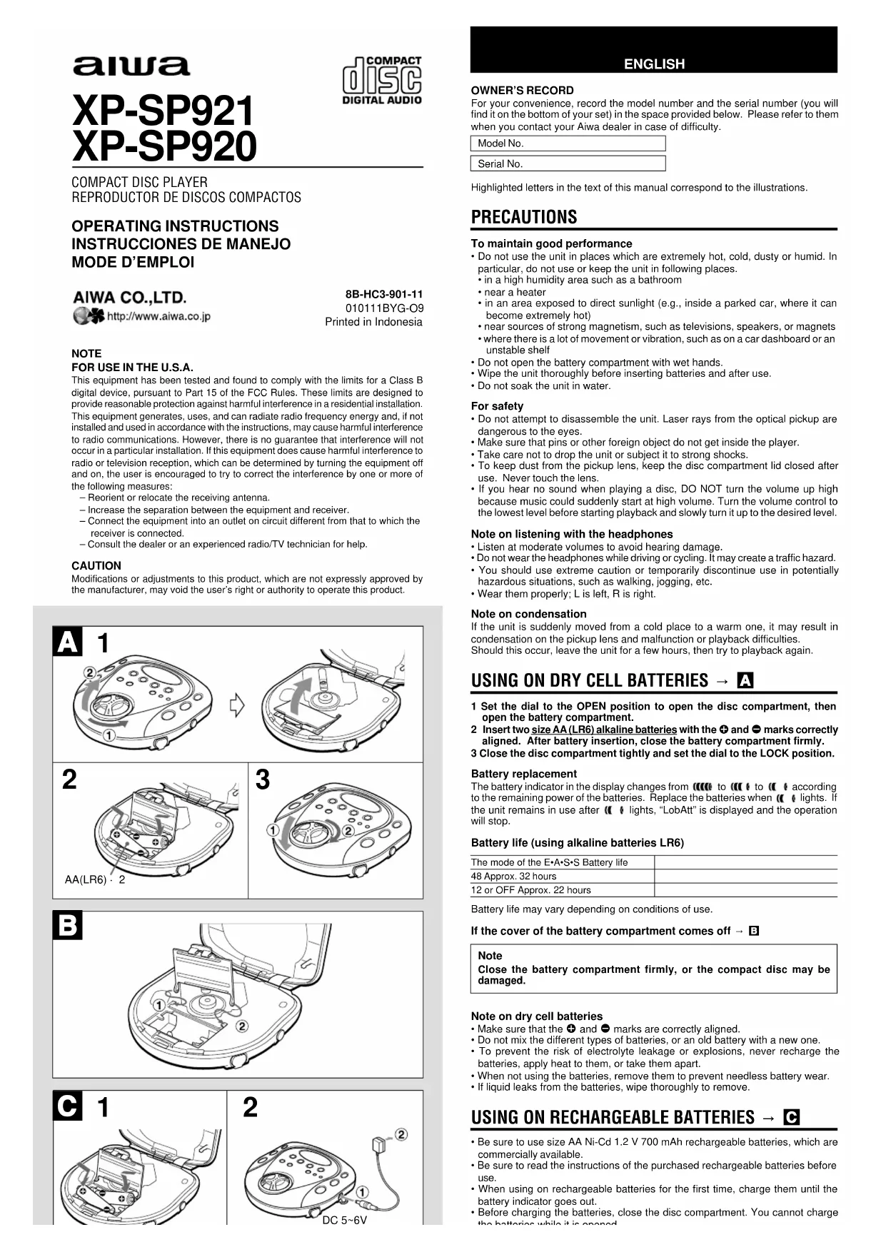 Téléchargez la notice de votre Lecteur/enregistreur de cd au format PDF gratuitement ! Retrouvez votre notice XPSP920 - AIWA et reprennez votre appareil électronique en main. Sur cette page sont publiés tous les documents nécessaires à l'utilisation de votre appareil XPSP920 de la marque AIWA.