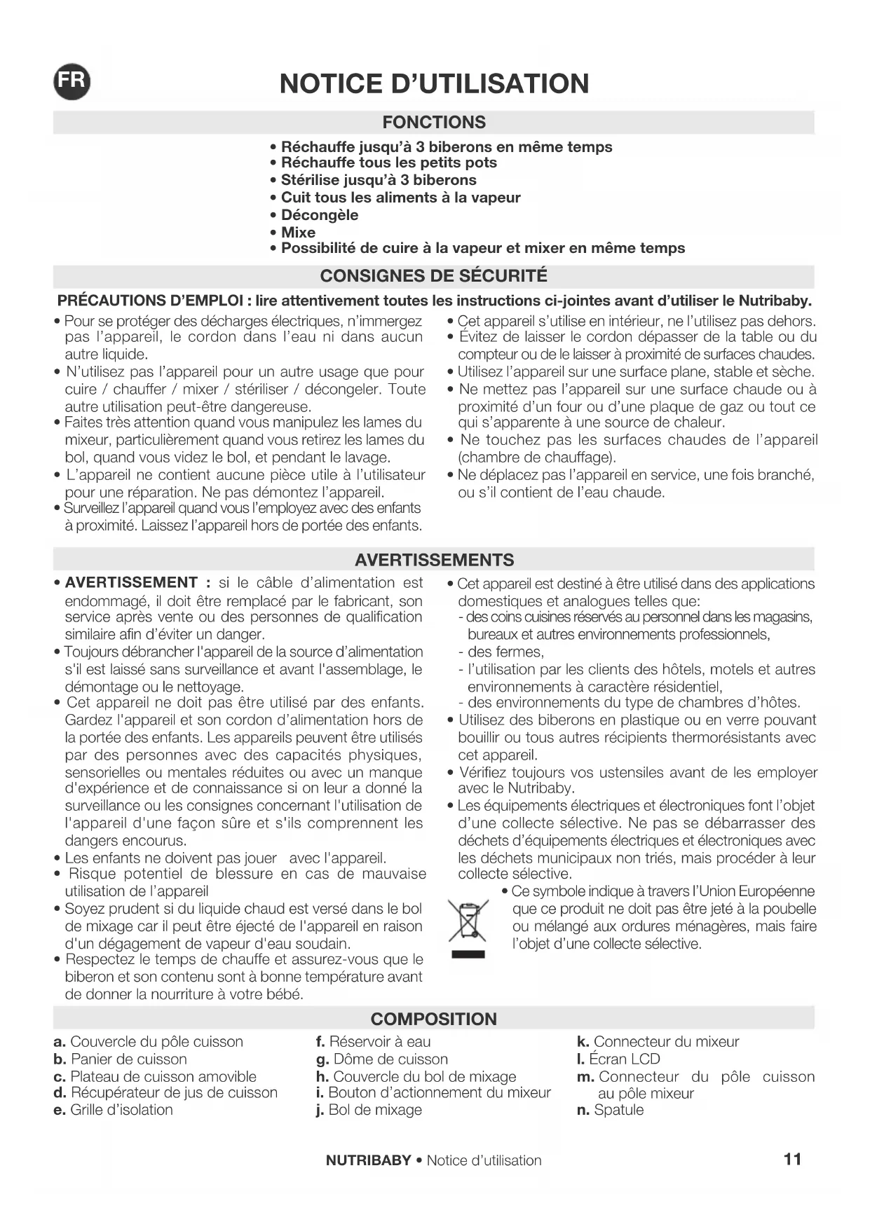 PRÉCAUTIONS D’EMPLOI : lire attentivement toutes les instructions ci-jointes avant d’utiliser le Nutribaby.