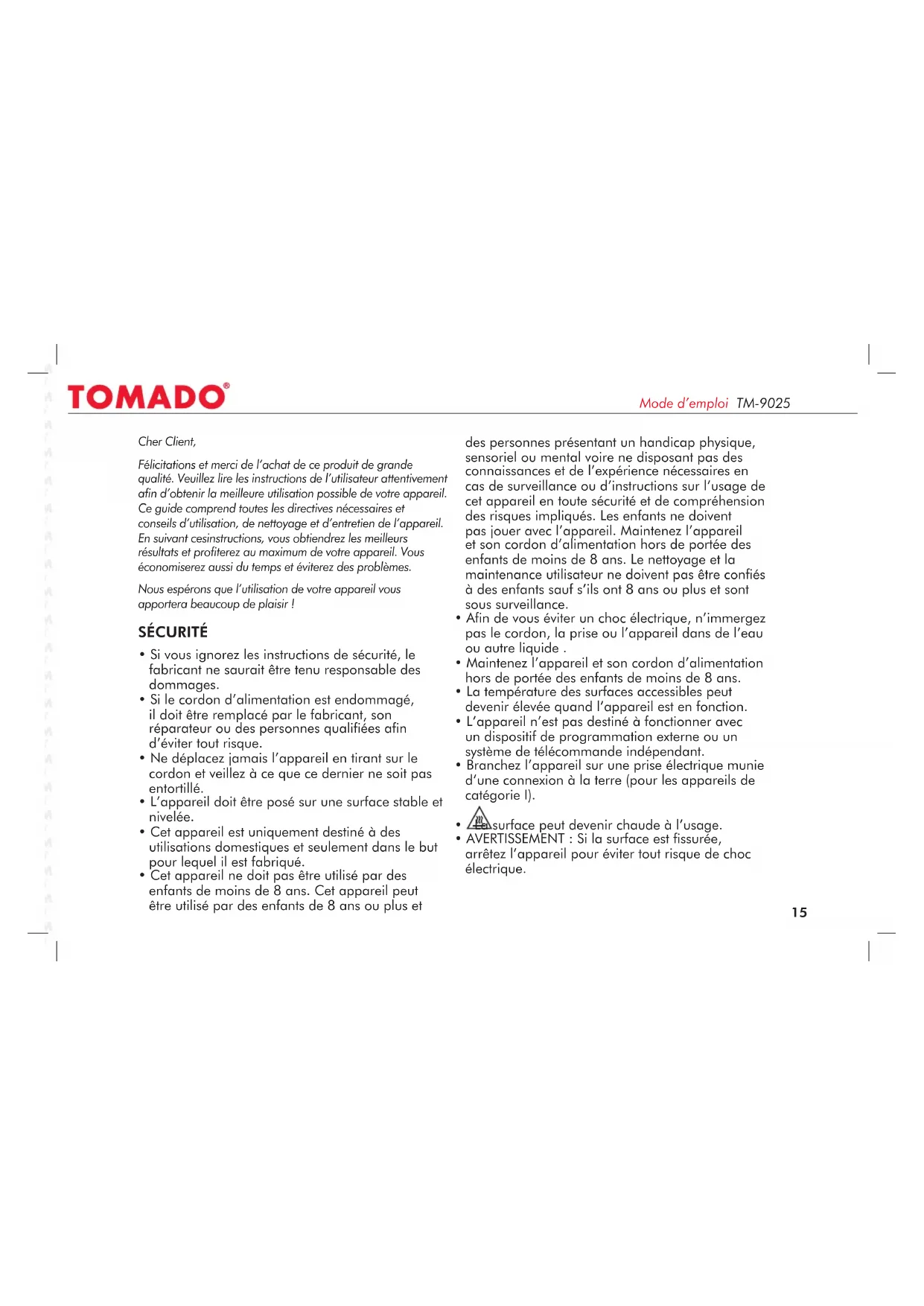 Retrouvez gratuitement la notice de l'appareil TM9025 Tomado au format PDF.
