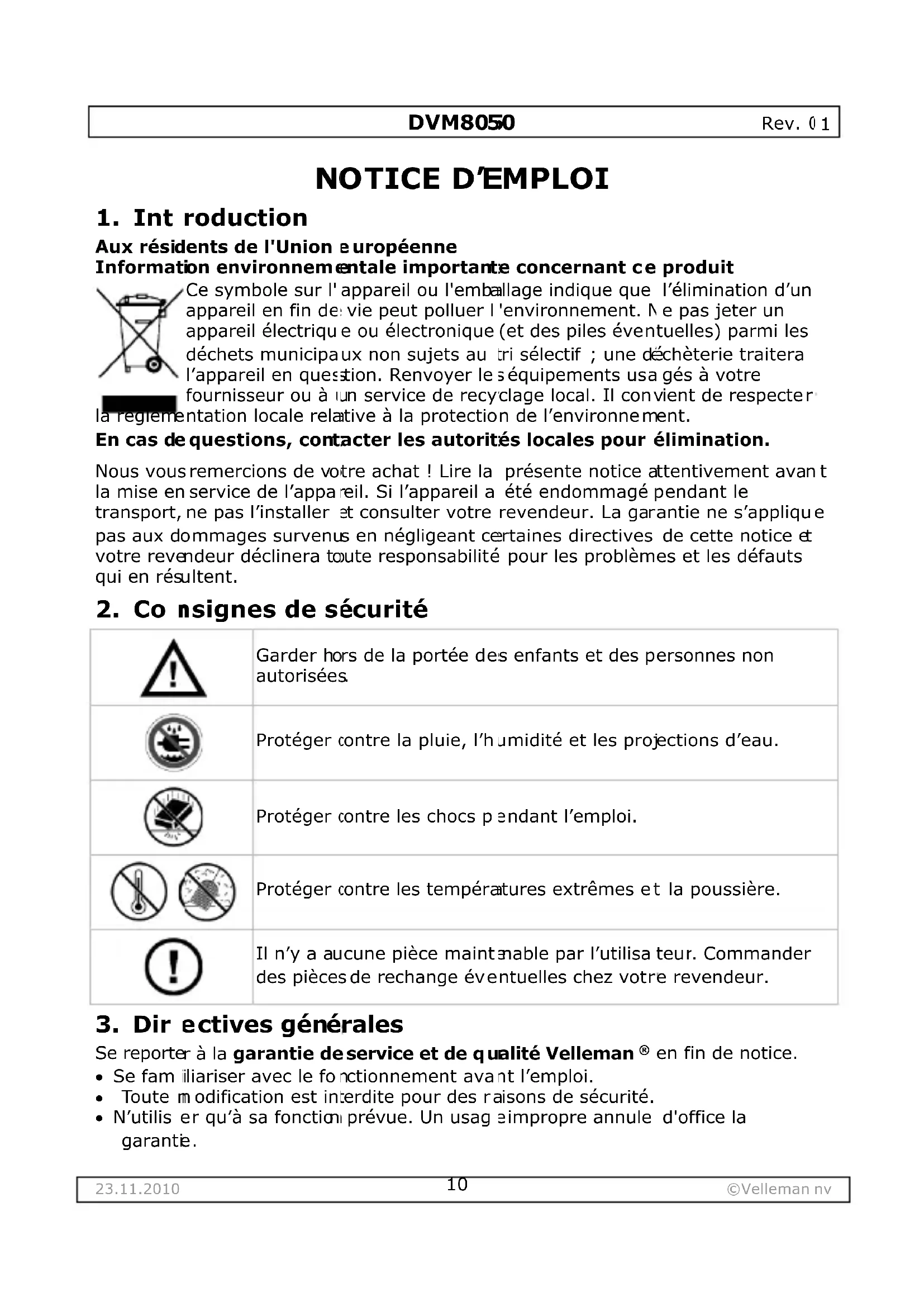 Retrouvez gratuitement la notice de l'appareil DVM8050 VELLEMAN au format PDF.