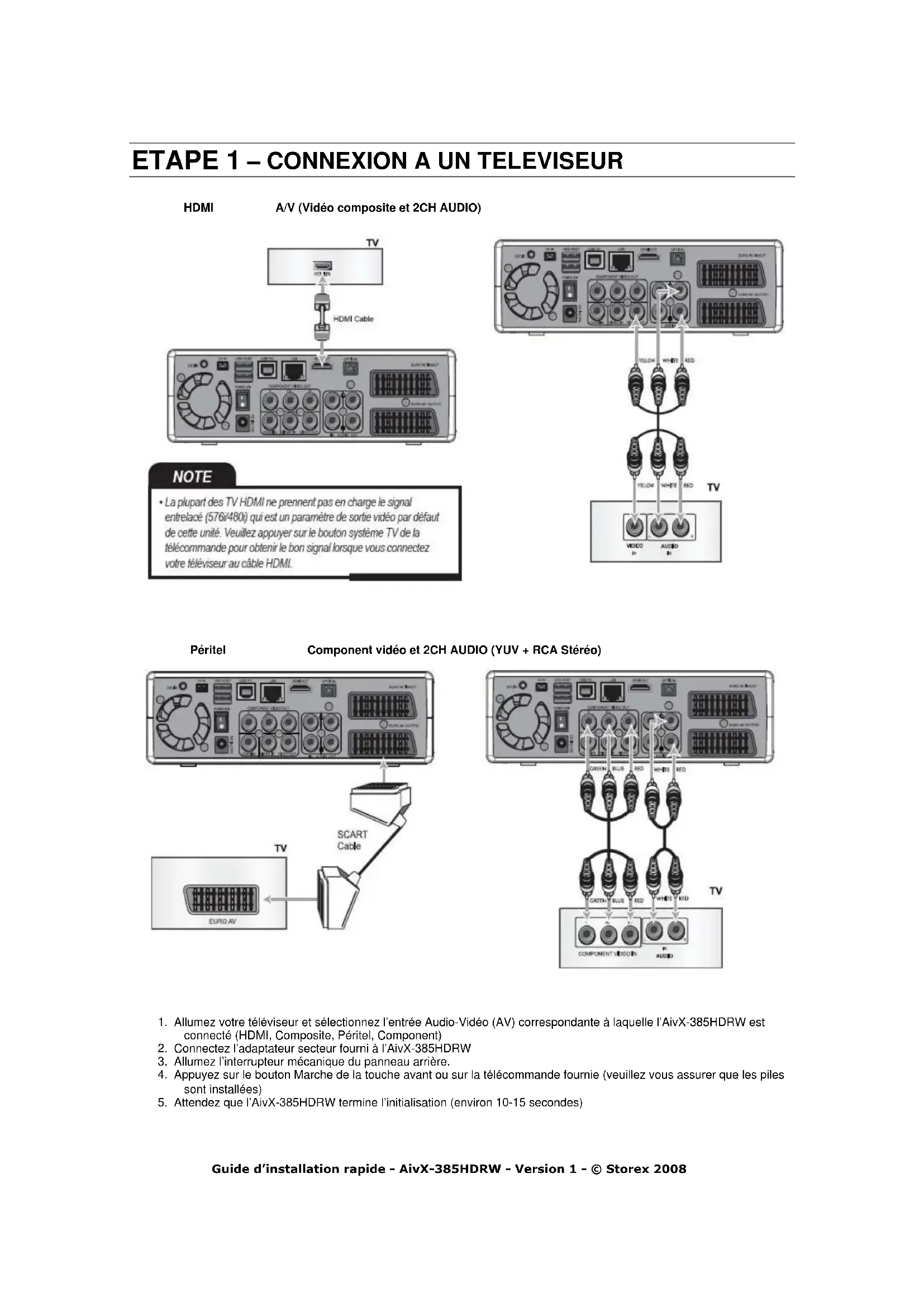 sont installées) 5. Attendez que l’AivX-385HDRW termine l’initialisation (environ 10-15 secondes)Guide d’installation rapide - AivX-385HDRW - Version 1 - © Storex 2008