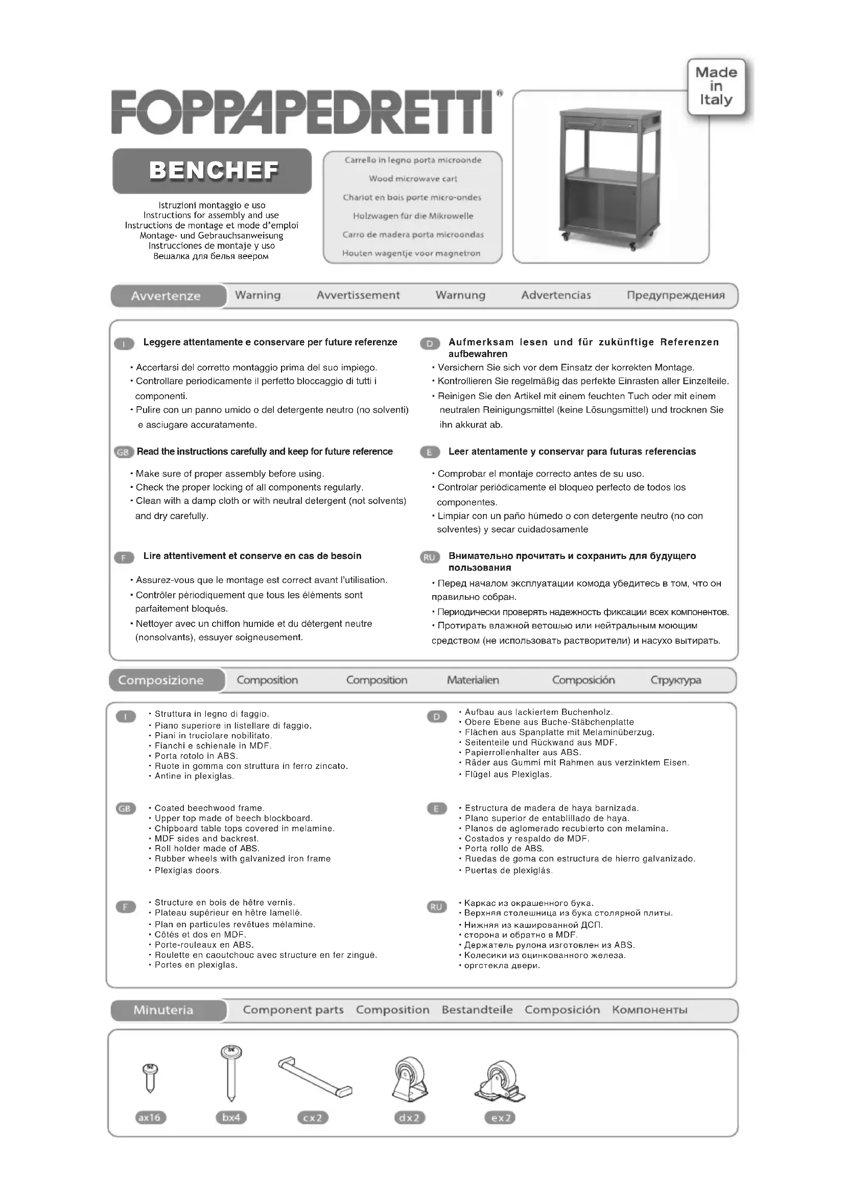 Benchef - Meuble de rangement Foppapedretti - Notice d'utilisation et mode d'emploi gratuit
