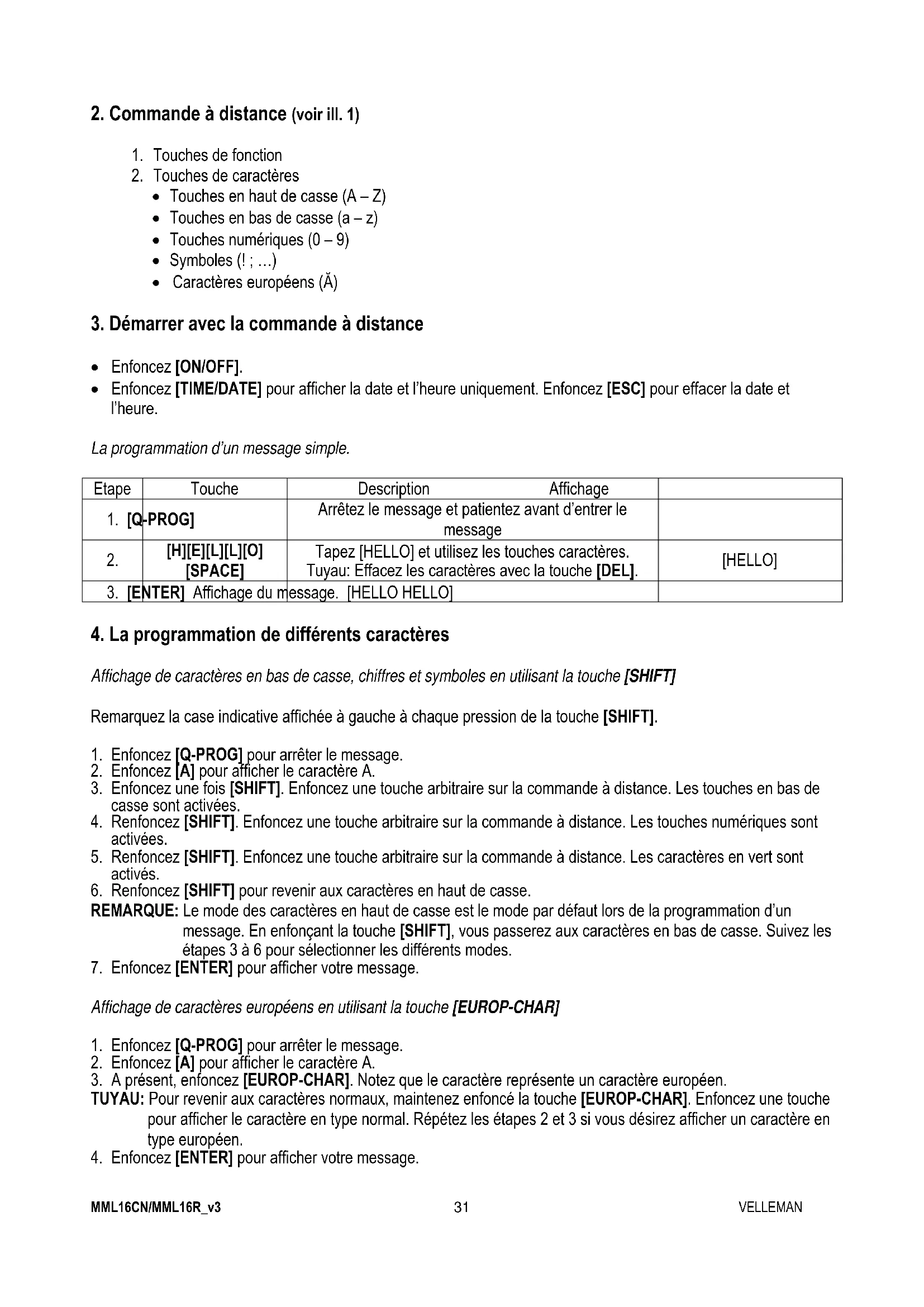 4. Enfoncez [ENTER] pour afficher votre message.MML16CN/MML16R_v3 VELLEMAN