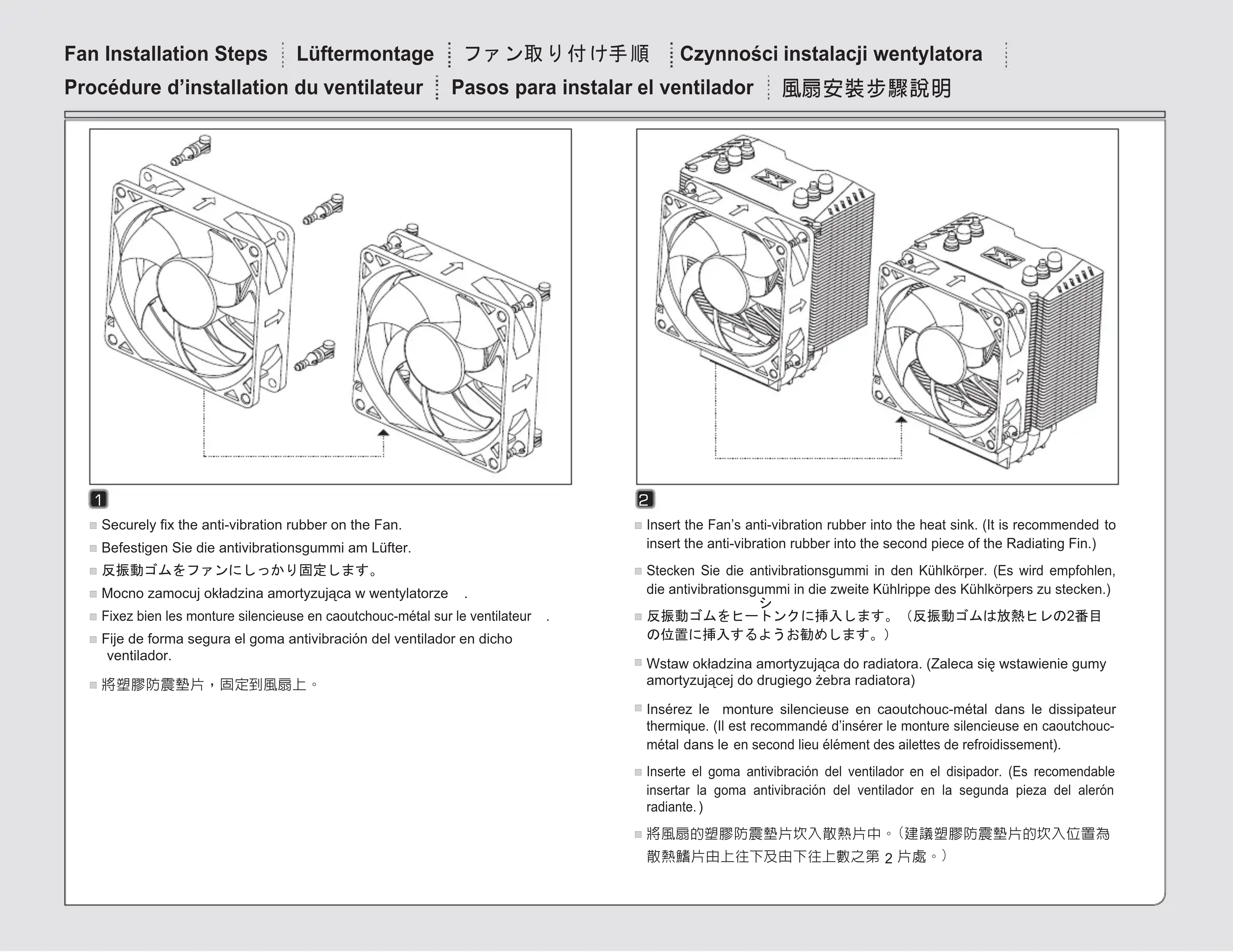 Fixez bien les monture silencieuse en caoutchouc-métal sur le ventilateur .