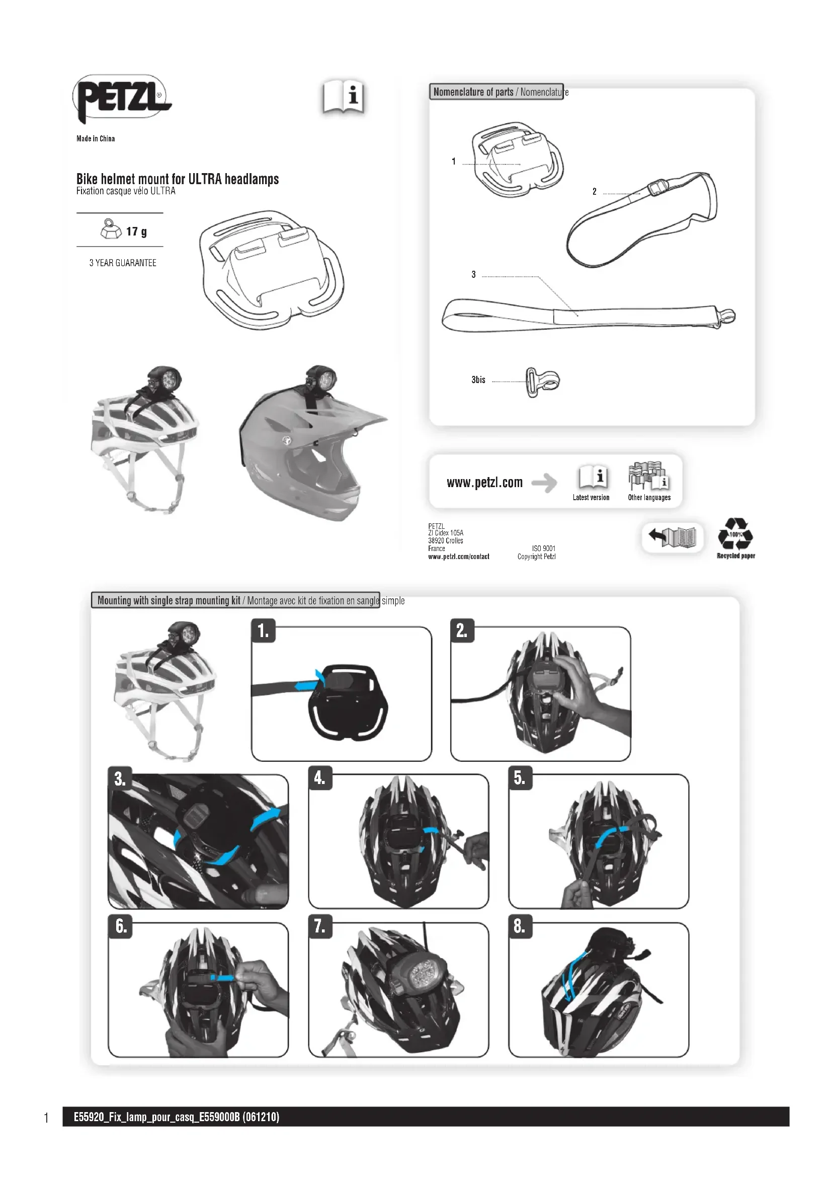 E55920 strap - Accessoire pour casque vélo Petzl - Notice d'utilisation et mode d'emploi gratuit