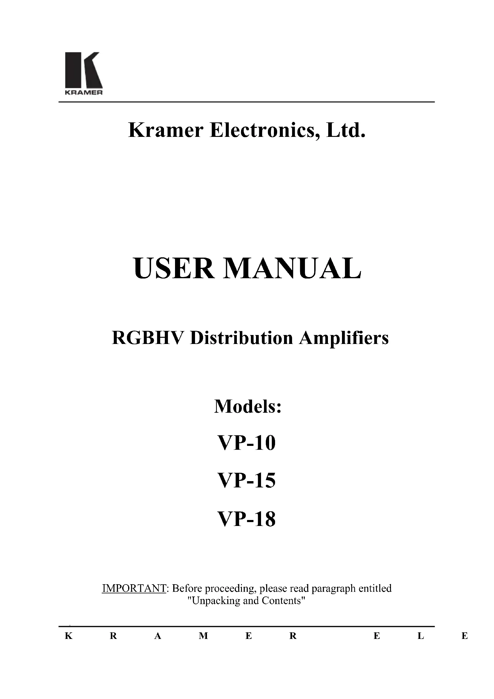 VP10 - Recepteur Kramer - Notice d'utilisation et mode d'emploi gratuit
