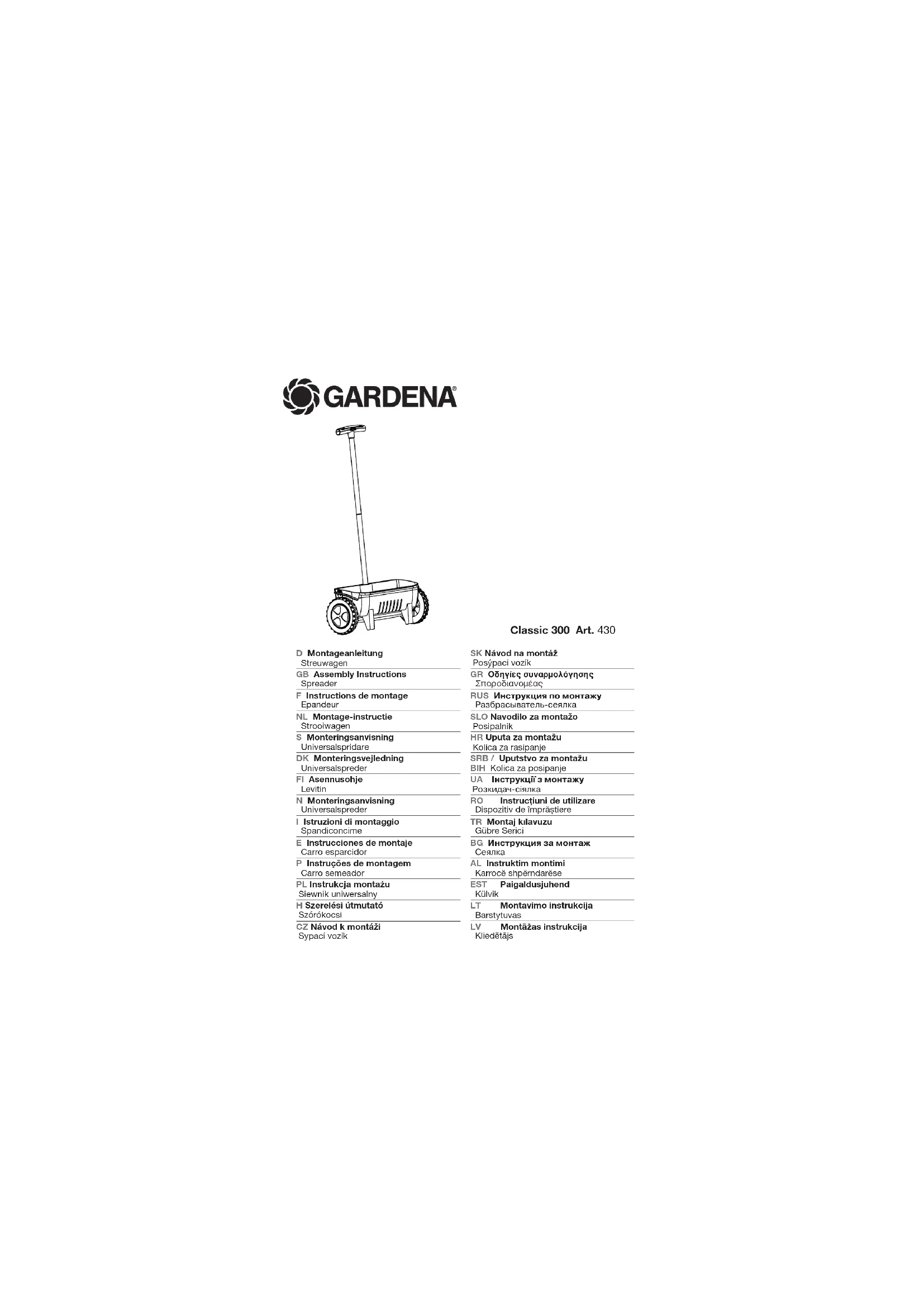 Classic 300 - Epandeur de jardin GARDENA - Notice d'utilisation et mode d'emploi gratuit