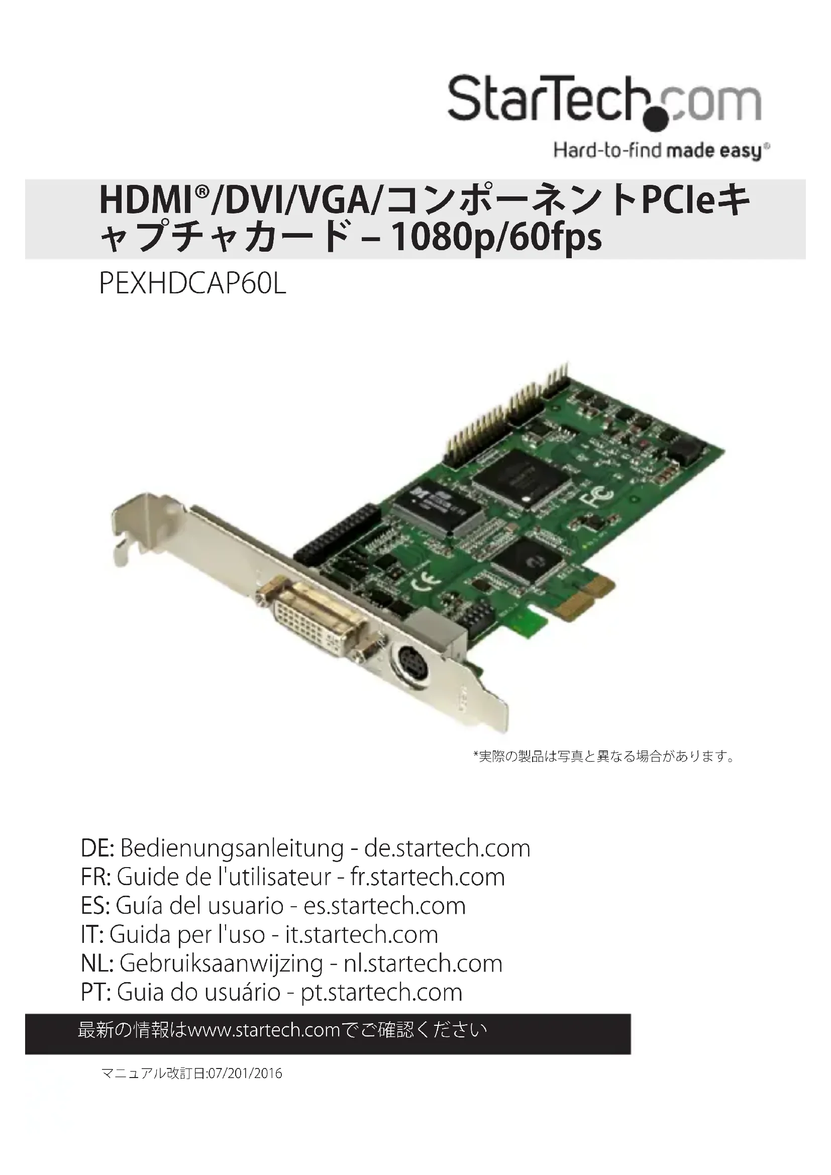 Retrouvez gratuitement la notice de l'appareil PEXHDCAP60L StarTech.com au format PDF.
