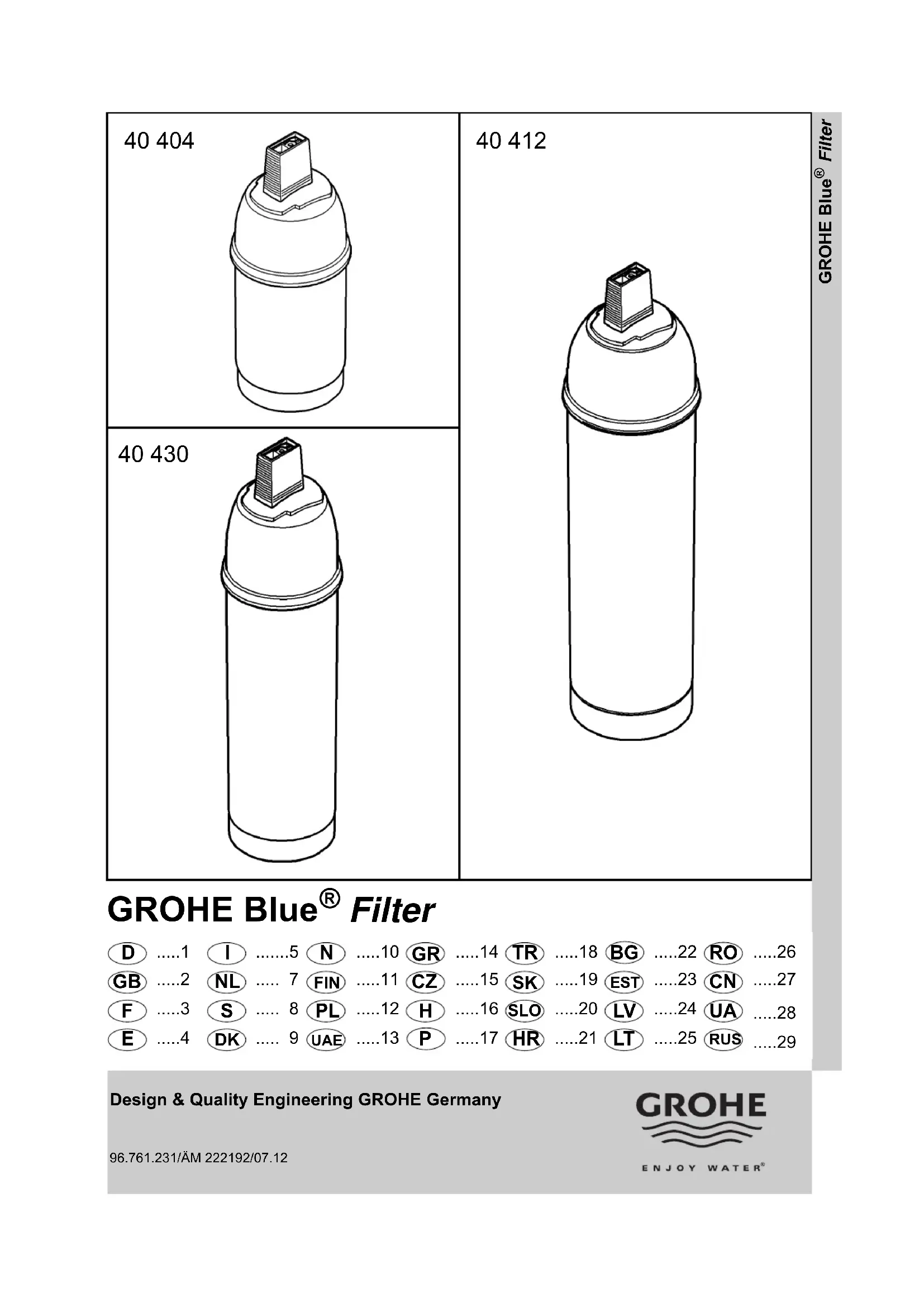 40404000 - Filtre à eau GROHE - Notice d'utilisation et mode d'emploi gratuit