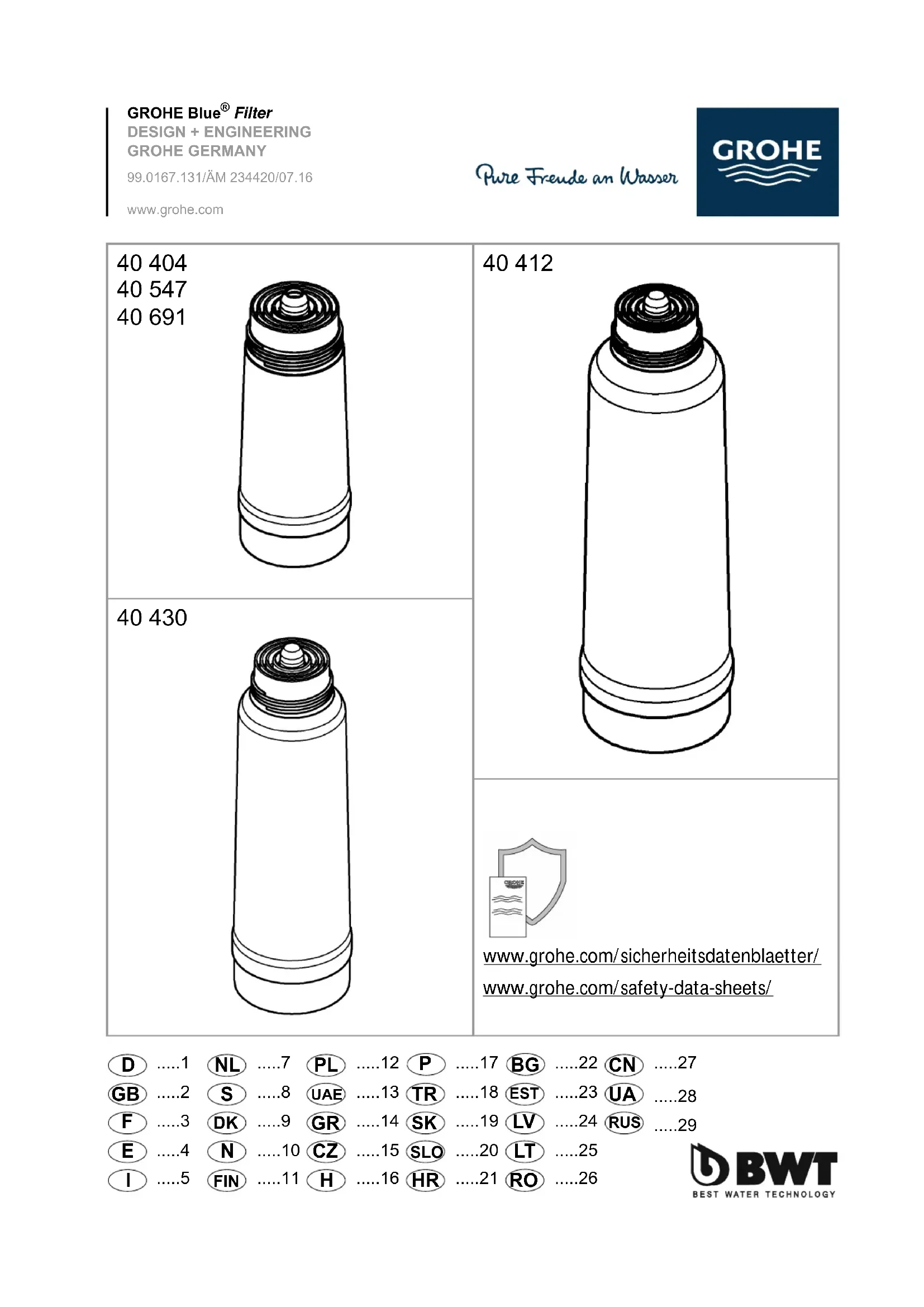 40404001 - Filtre à eau GROHE - Notice d'utilisation et mode d'emploi gratuit