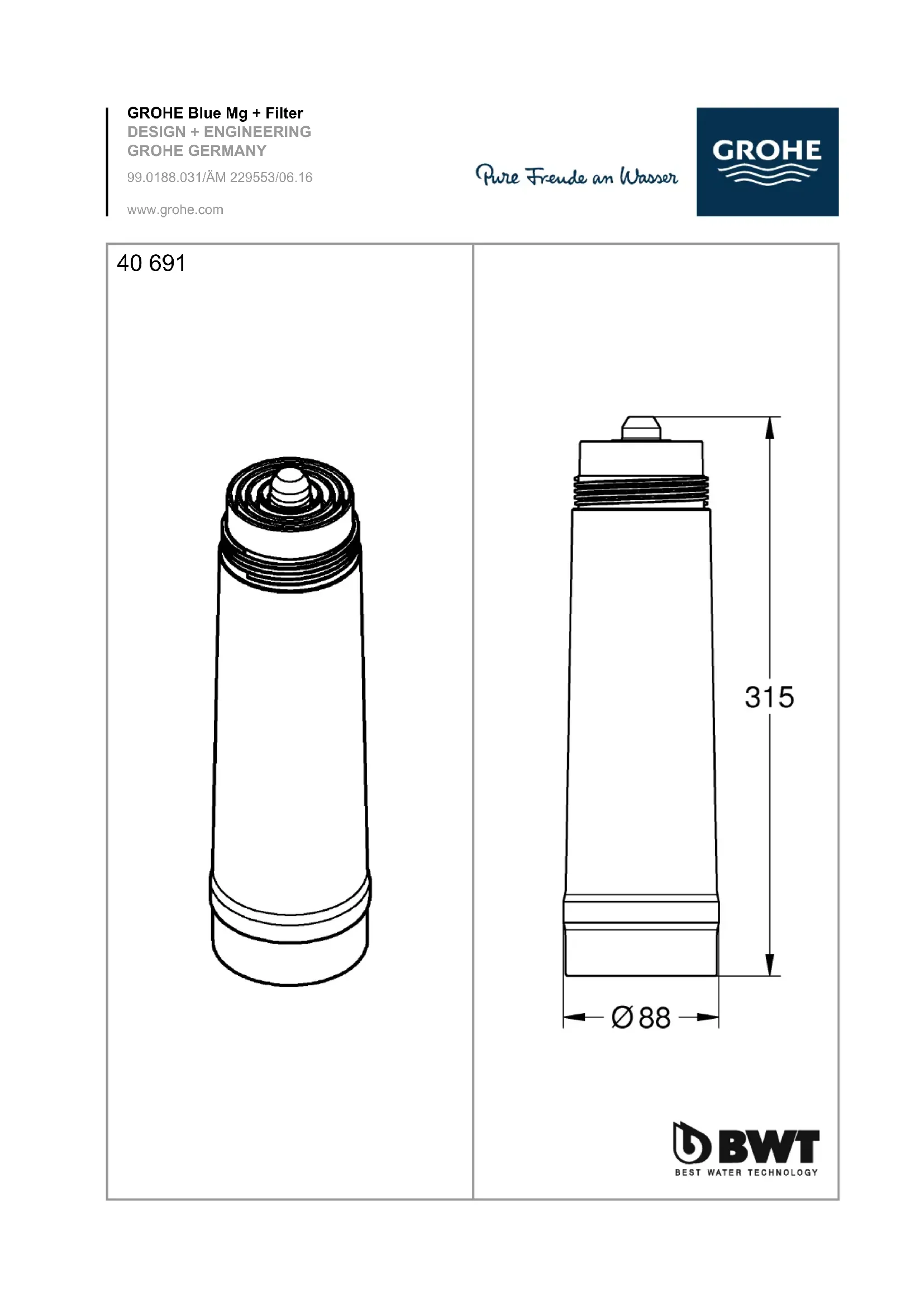 40691001 - Filtre à eau GROHE - Notice d'utilisation et mode d'emploi gratuit