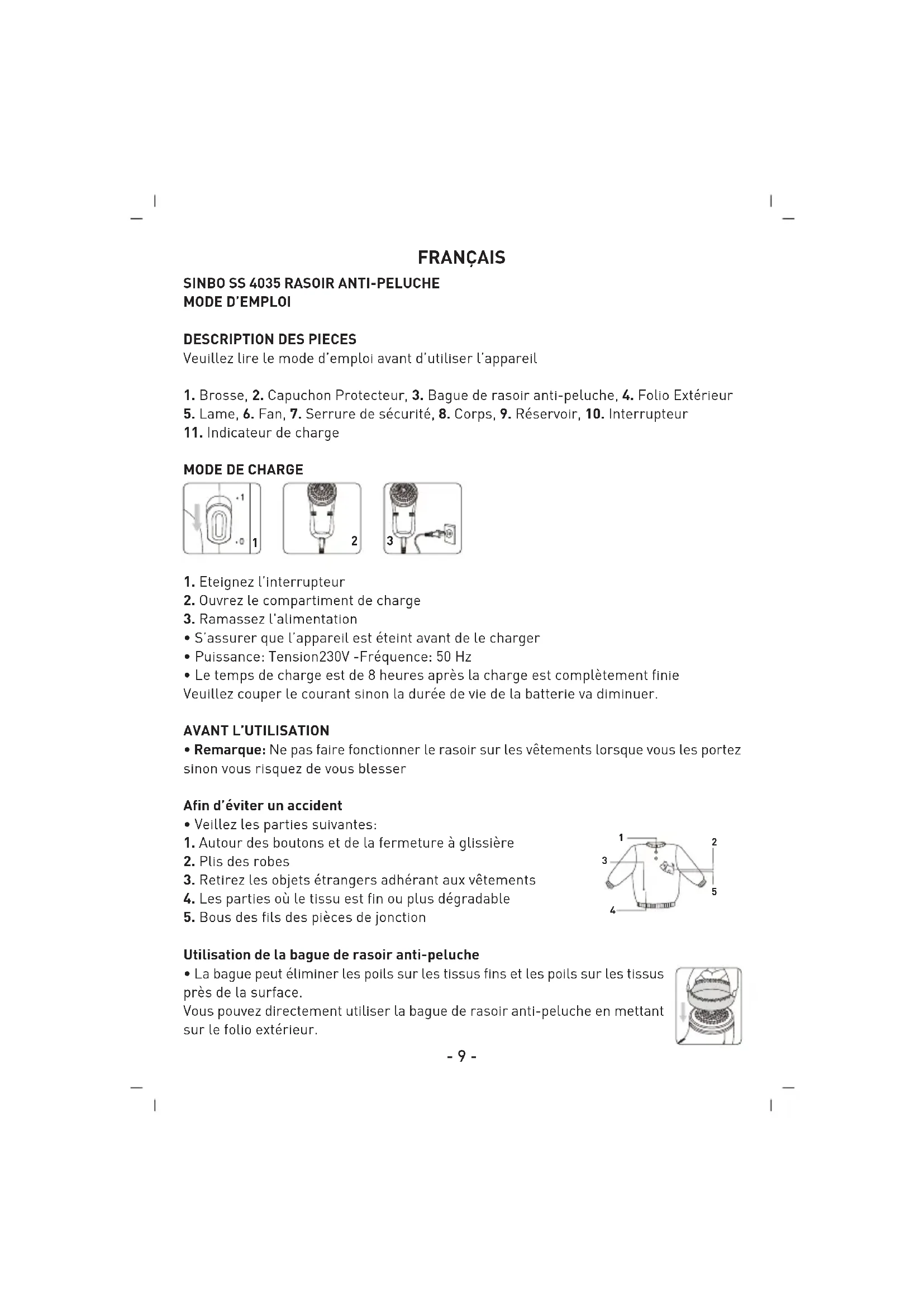 SS4035 - épilateur électrique SINBO - Notice d'utilisation et mode d'emploi gratuit