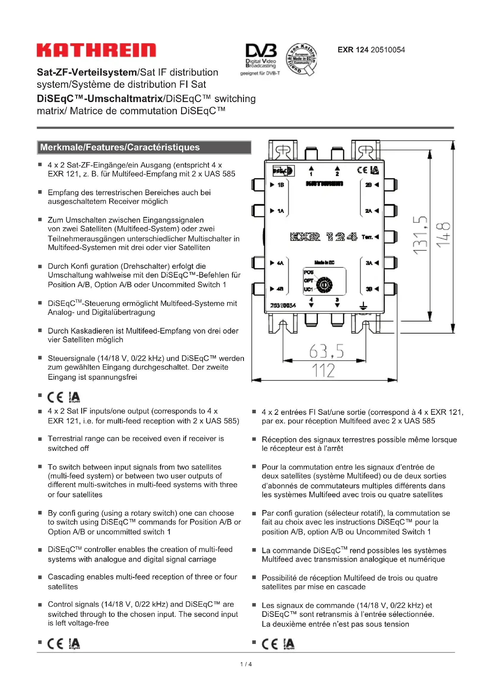 EXR 124 - Répartiteur satellite KATHREIN - Notice d'utilisation et mode d'emploi gratuit