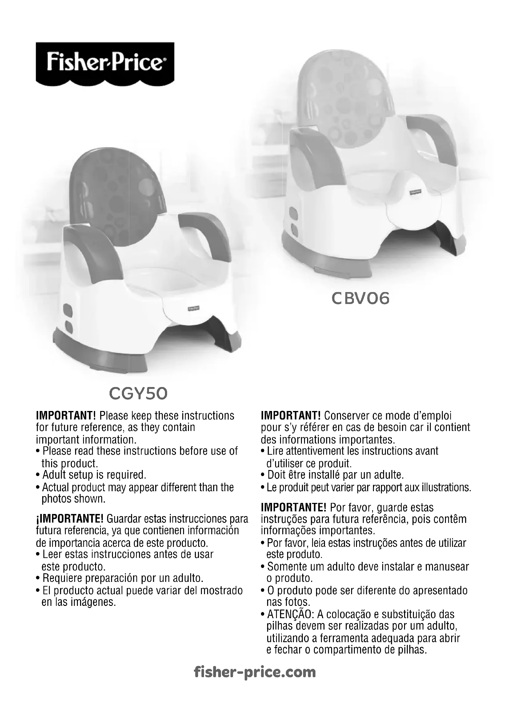 Custom Comfort Potty - Produits bébés FISHER-PRICE - Notice d'utilisation et mode d'emploi gratuit