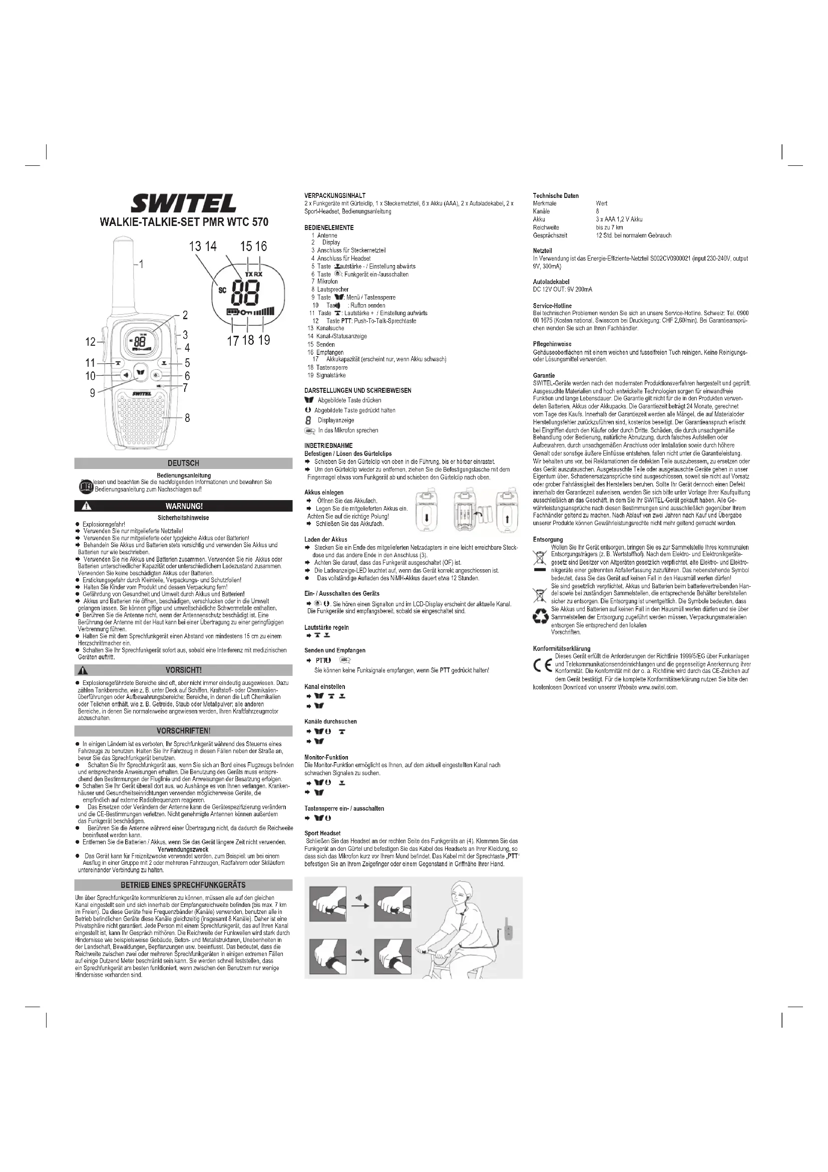 Les apparatusis SWITEL sont contriférés et fabriques suivant les mêlures procédés. Dos matériaux選données et des technologiques de pointeur garantiés un fonctionnement impropochable et une longue durée de vie. La garantie ne s'applique pas aux ples et pilles rechargeables utilisées dans les produits. La durée de la garantie est de 24 mois à partir de la date d'achat. Pendant la durée de la garantie, tous les défauts dus a ces vices de maléfiance ou fabrication seront éliminés gratuites. Le droit à la garantie expire en cas d'intervention d'achat ou de liers. Les dommages provenant d'un manement ou d'une manipulation incorrentes, d'une Usurale naturelle, d'une mauvaise mise en place ou d'une mauvaise conservation, d'un recodrement ou d'une installation incorporets ainsi que un cas de force majorée ou autres influences extirpées sont exculés de la garantie. En cas de réclamations, nous为您 réservés le droit de repartir, de répackager les pièces défectueuses ou d'échéancer l'âparché. Les consompatifs rempôcs ou les appèciés échéçés devient notre propriété. Les demandes de dommages et intérêts sont excusés tant que les défauts ne repostat parasucr une faîcule intentionnelle ou une rigénçage grossière du fabriac. Si vous accroisaient SWITEL, presente espendant un défaut pondant la pirote de garantie, veilliez-vous adresser exclusivement au magasin où vous déschaçé en représentant votre bon d'achat. Vous ne pouvez faire valor des droits à la garantie responsable des这条 dispositions qu'éxclusivement auprès de cette reveure reineur. Deux ans après l'achat et la remise de nos produits, il n'est plus possible de faïve valor des droits à la garantie.