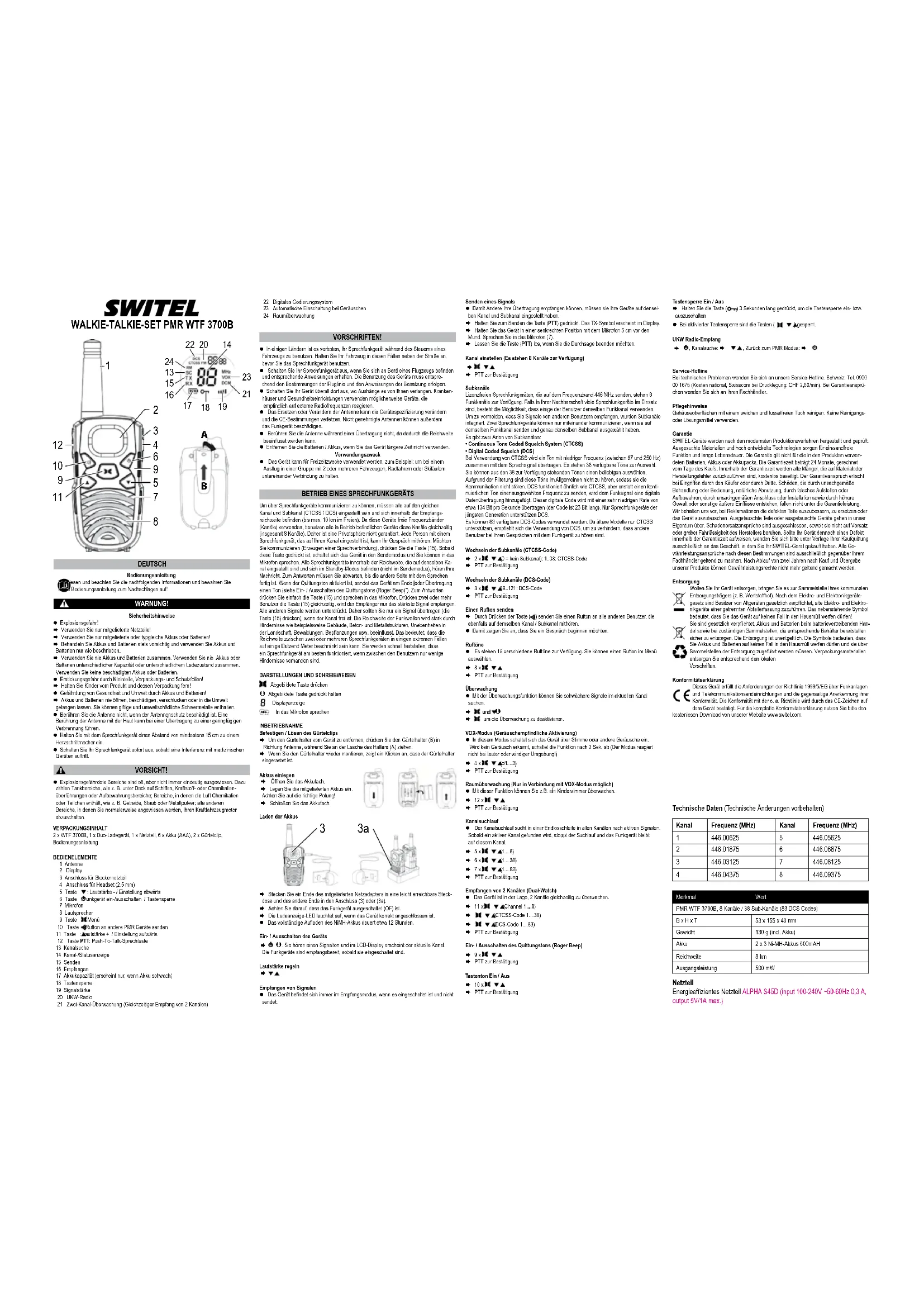 SWITEL KIT RICETRASMITTENTI PMR WTF 3700B