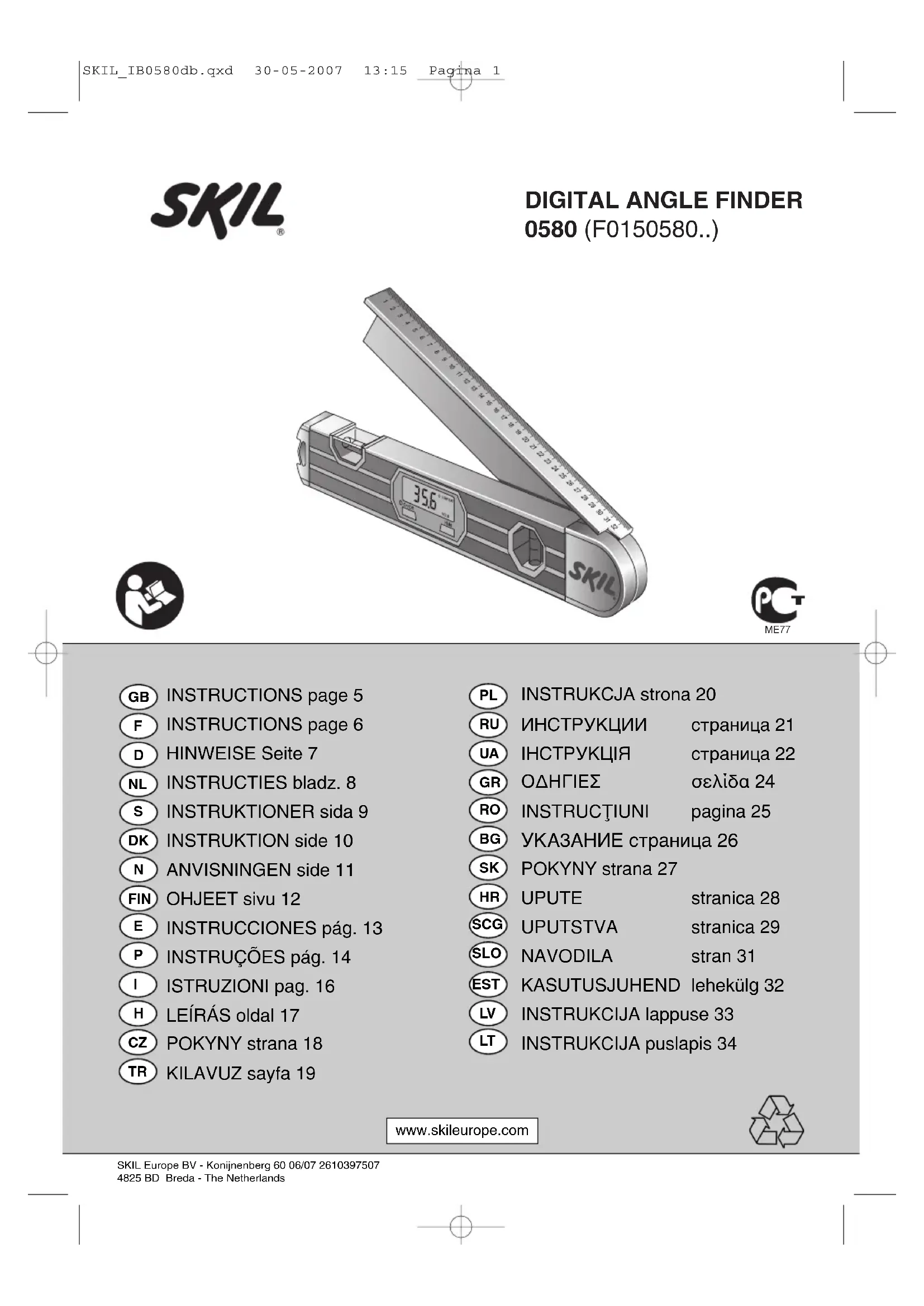 0580 AA - équipements de mesure SKIL - Notice d'utilisation et mode d'emploi gratuit