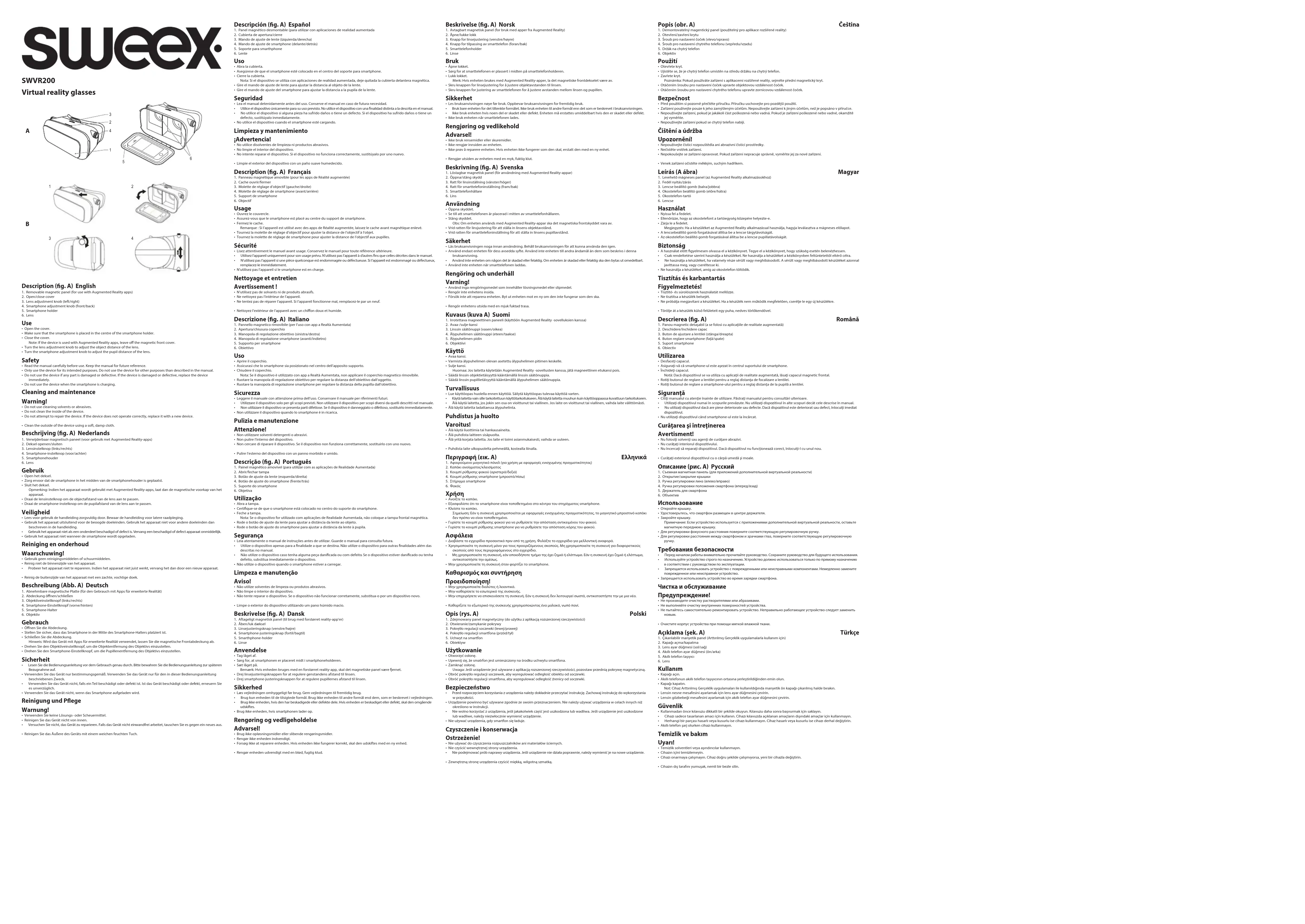 SWVR200 - Casque de réalité virtuelle SWEEX - Notice d'utilisation et mode d'emploi gratuit