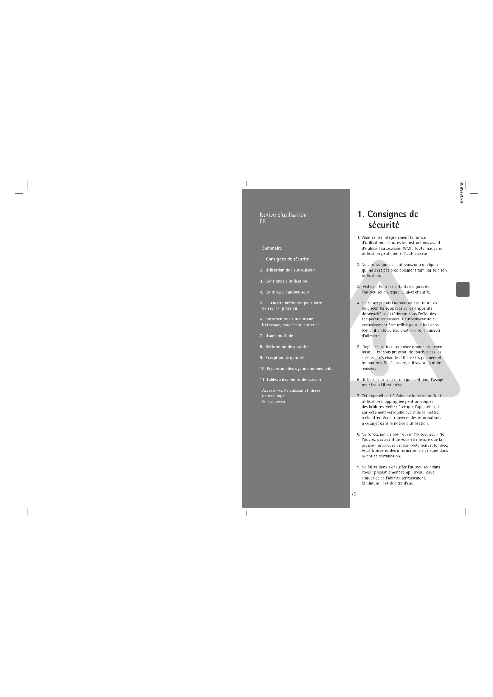 l’ouvrez pas avant de vous être assuré que la pression intérieure est complètement retombée. Vous trouverez des informations à ce sujet dans la notice d’utilisation.