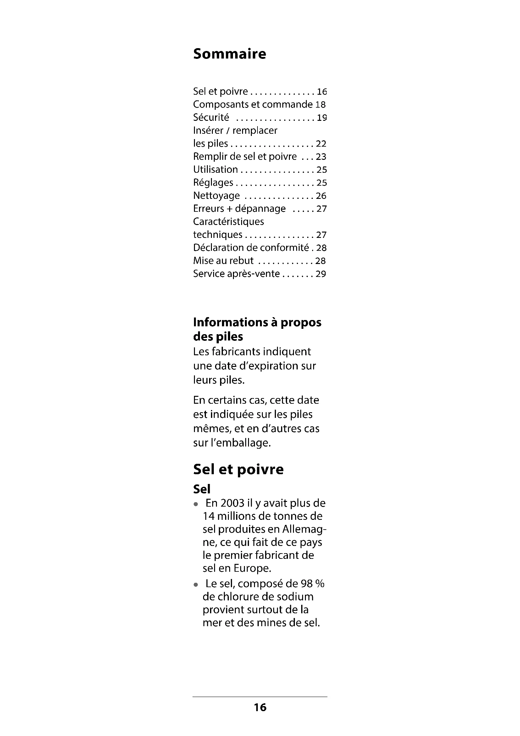 | Capacité | Environ 50 g de sel ou de poivre |