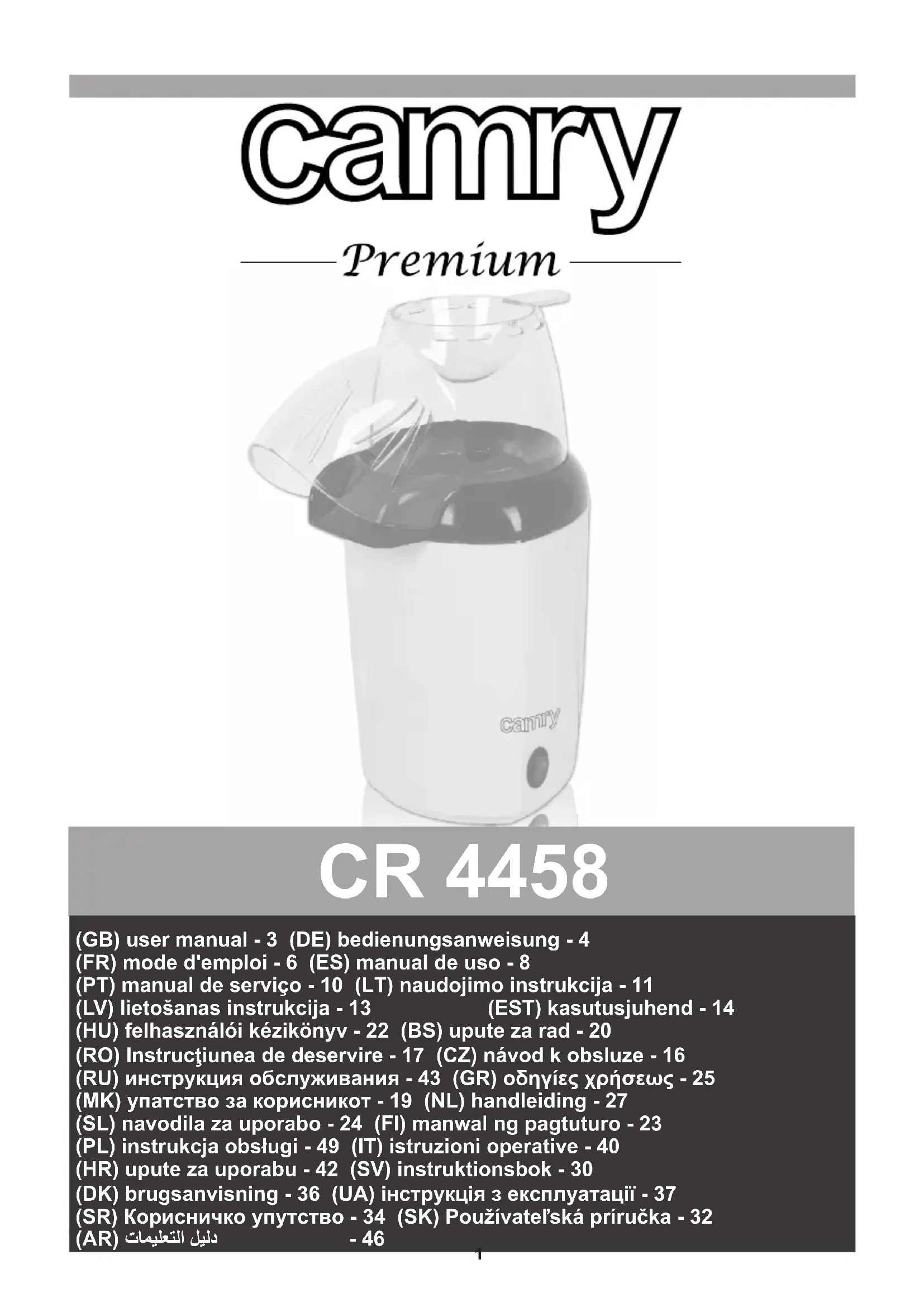 CR 4458 - Machine à popcorn CAMRY - Notice d'utilisation et mode d'emploi gratuit