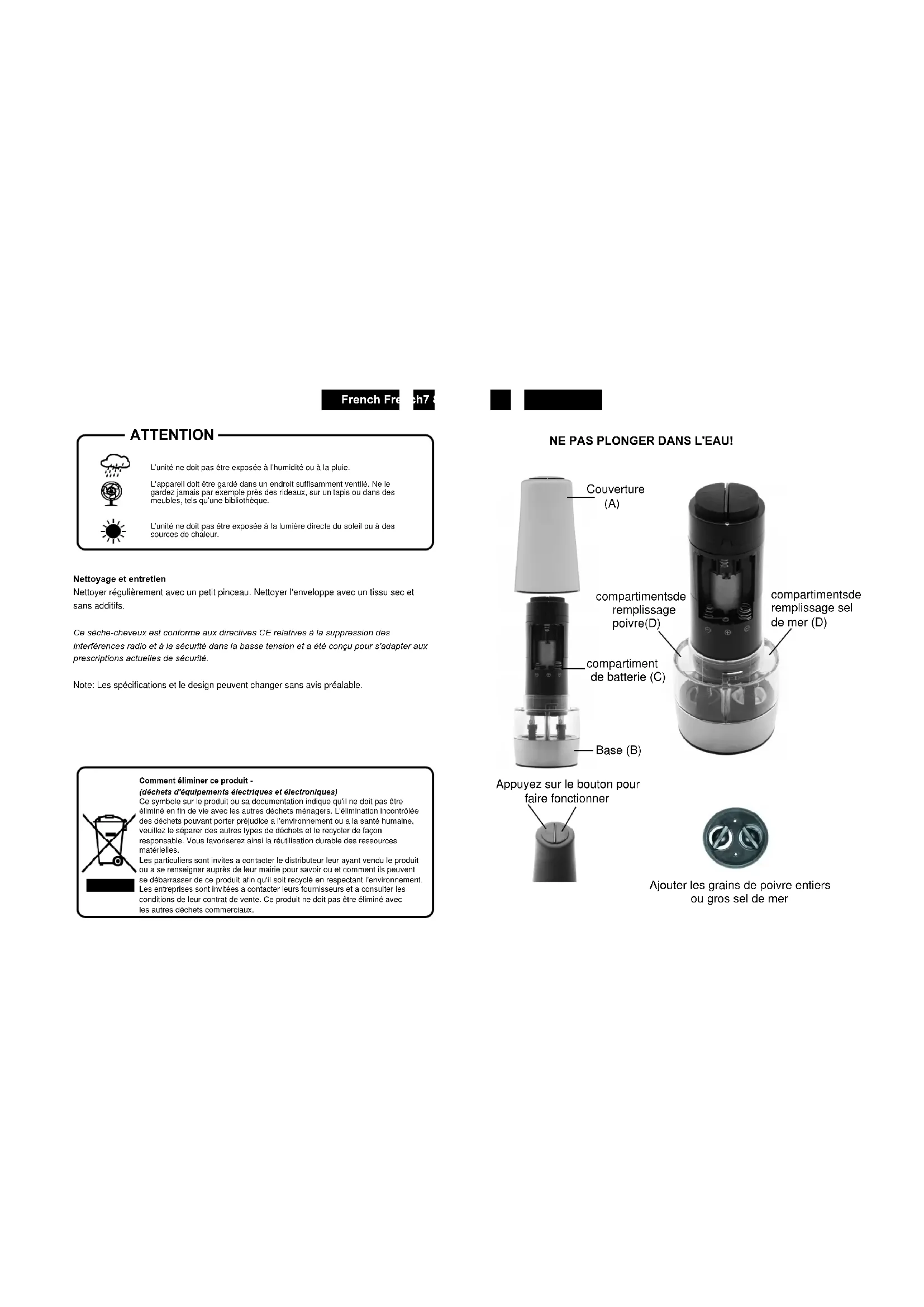 2- Toujours maintainir I'objet propre et évitier de mesure le moulin en contact avec l'eau