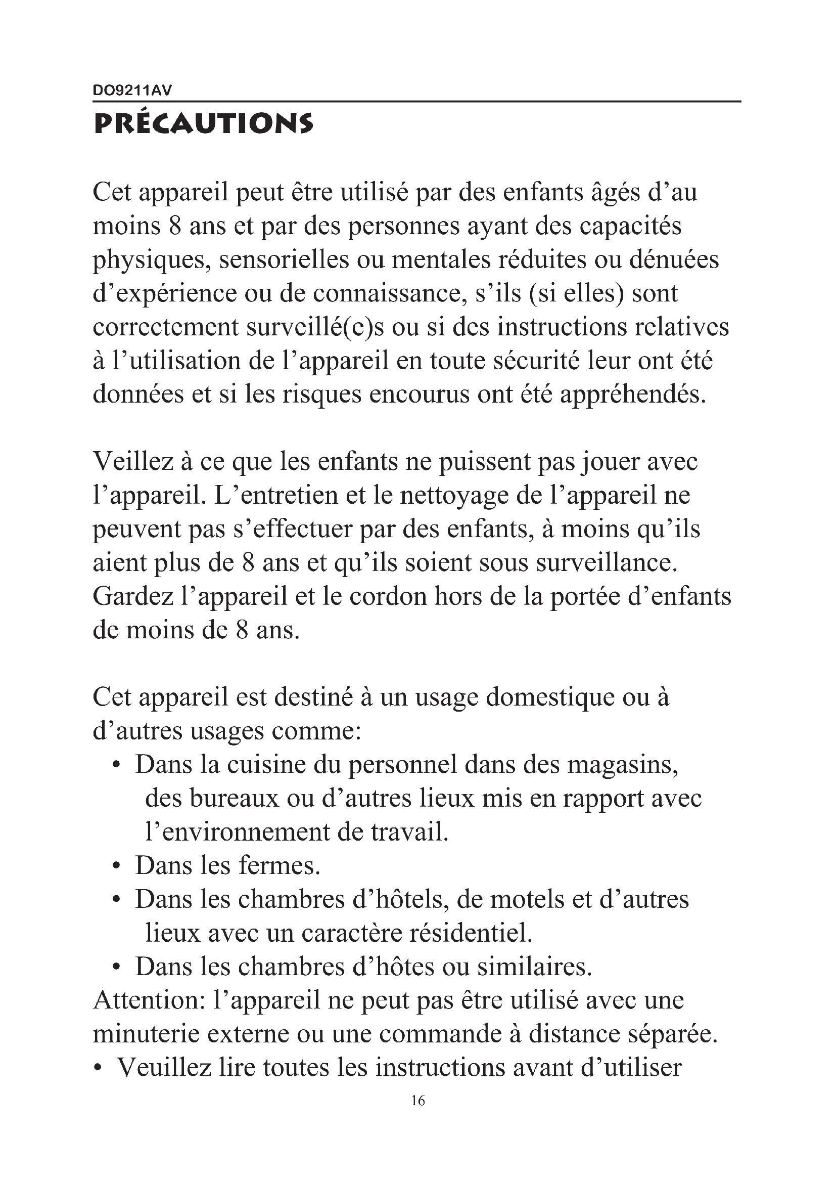 Retrouvez gratuitement la notice de l'appareil DO9211AV DOMO au format PDF.
