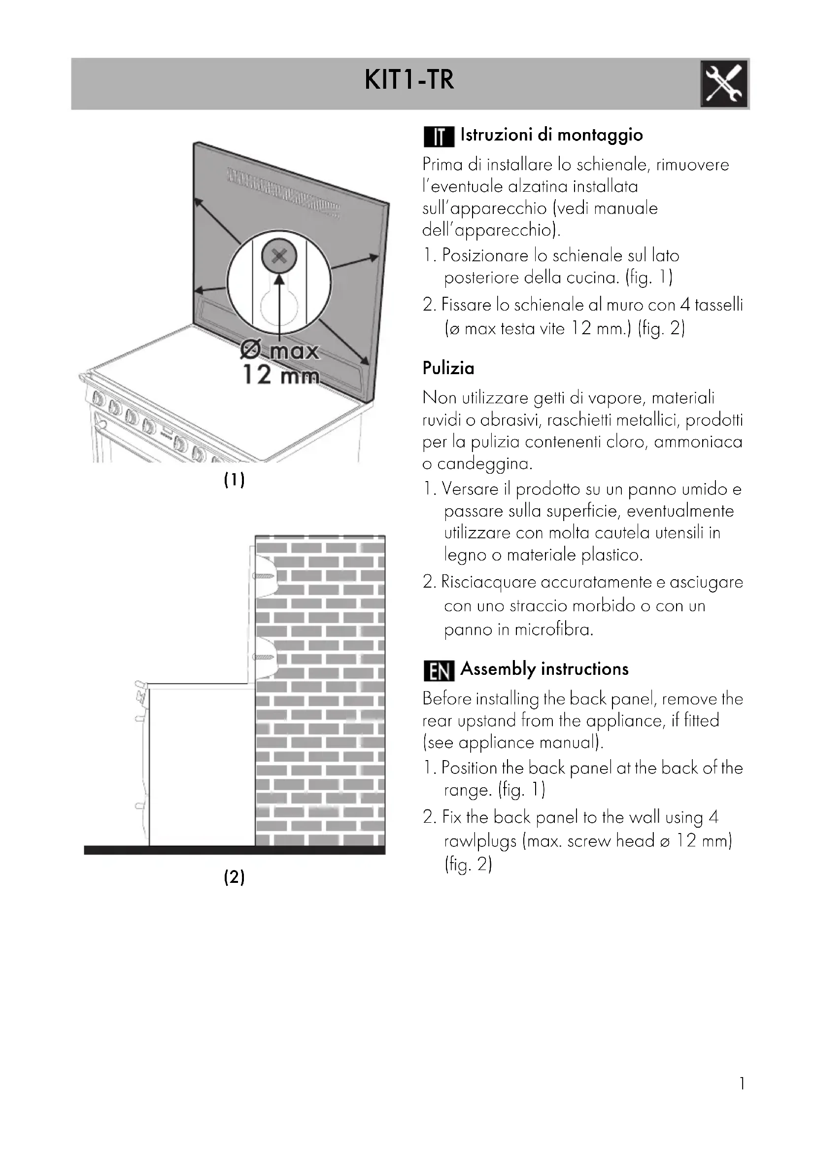 or a microfibre cloth. Instructions de montage Avant d'installer le panneau arrière, démontez l'éventuel dosseret présent (voir le manuel de l'appareil).