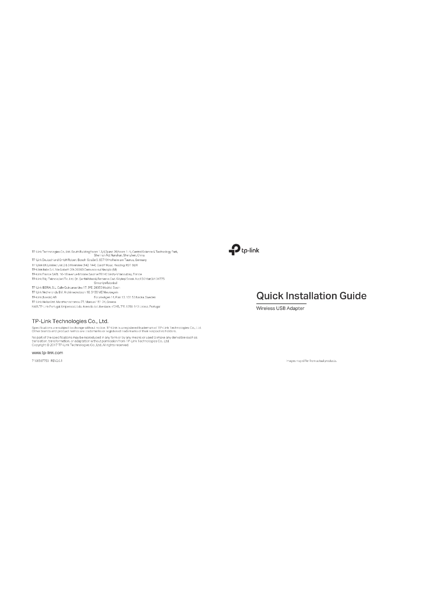 Français 1 Connecter à un ordinateur Option 1 : Directement Option 2 : Via la rallonge USB Remarque : Sous Windows XP et Vista, une fenêtre Nouveau matériel détecté apparaitra à la détection de l'adaptateur. Merci de cliquer sur Annuler. 2 Installer le pilote Pour Windows A. Insérer le CD et exécuter Autorun.exe. Remarque : Vous pouvez aussi télécharger le pilote depuis la page support du produit sur www.tp-link.fr. B. Sélectionner votre adaptateur et suivre les instructions pour procéder à son installation. Remarque : Si vous ne pouvez installer le pilote, désactivez l'antivirus et le parefeu avant d'essayer à nouveau. Pour OS X A. Télécharger pilotes et utilitaire depuis la page support du produit sur www.tp-link.fr. B. Désarchivez le chier téléchargé et exécutez install.pkg. C. Suivre les instructions pour procéder à son installation. 3 Se connecter à un réseau Wi-Fi Pour Windows Option 1 : Via l'outil de gestion du Wi-Fi de Windows A. Cliquer sur l'icône réseau ( ou ) de la barre des tâches. B. Sélectionner le réseau Wi-Fi, cliquer sur se connecter puis saisir le mot de passe requis à l'invite. Uninstall.commandInstall.pkgSHELL
