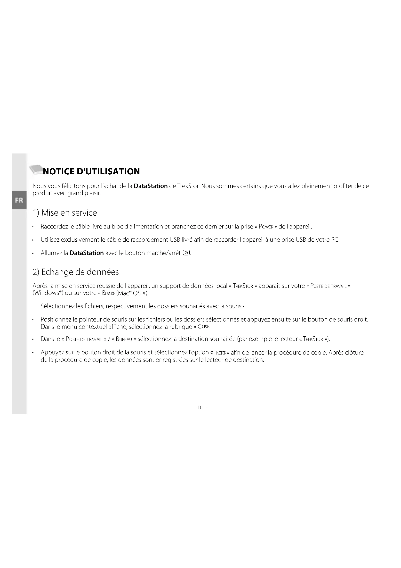 – 11 – NOTICE D'UTILISATION Nous vous félicitons pour l’achat de la DataStation de TrekStor. Nous sommes certains que vous allez pleinement profiter de ce produit avec grand plaisir.