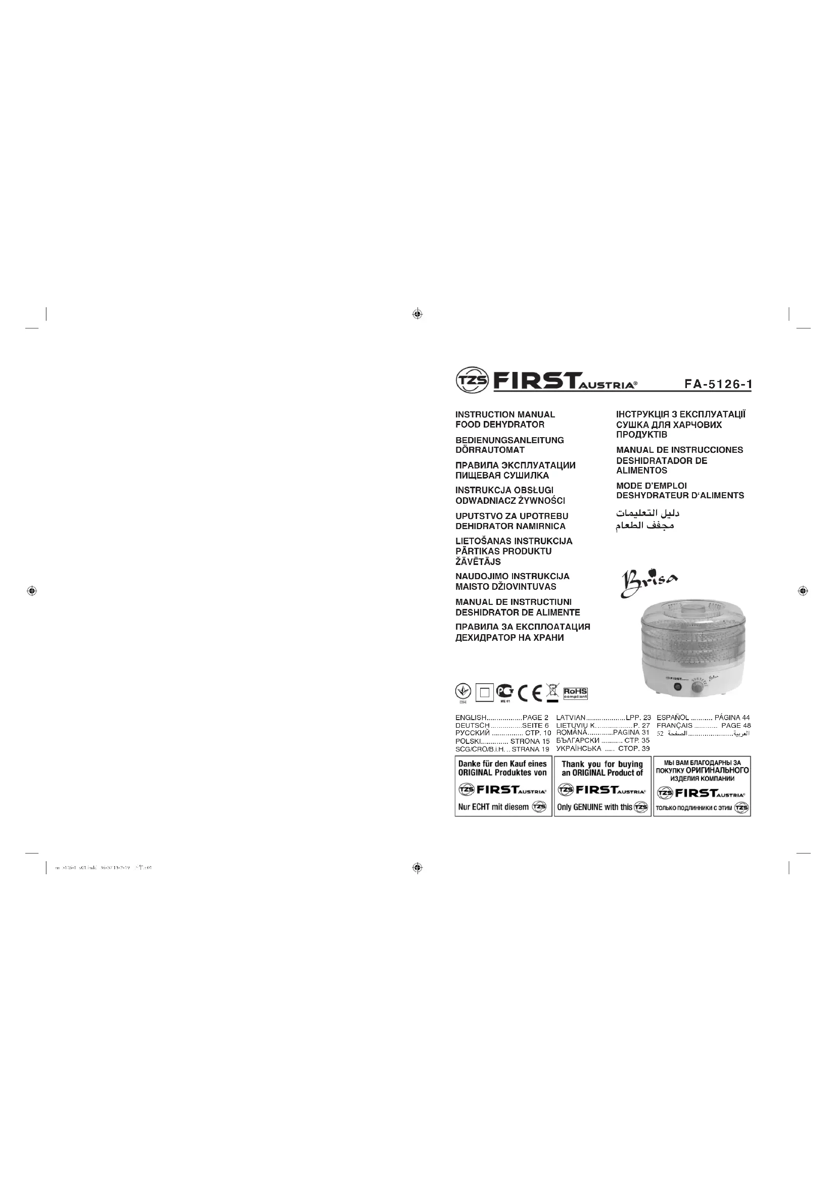 Retrouvez gratuitement la notice de l'appareil FA51261 First Austria au format PDF.