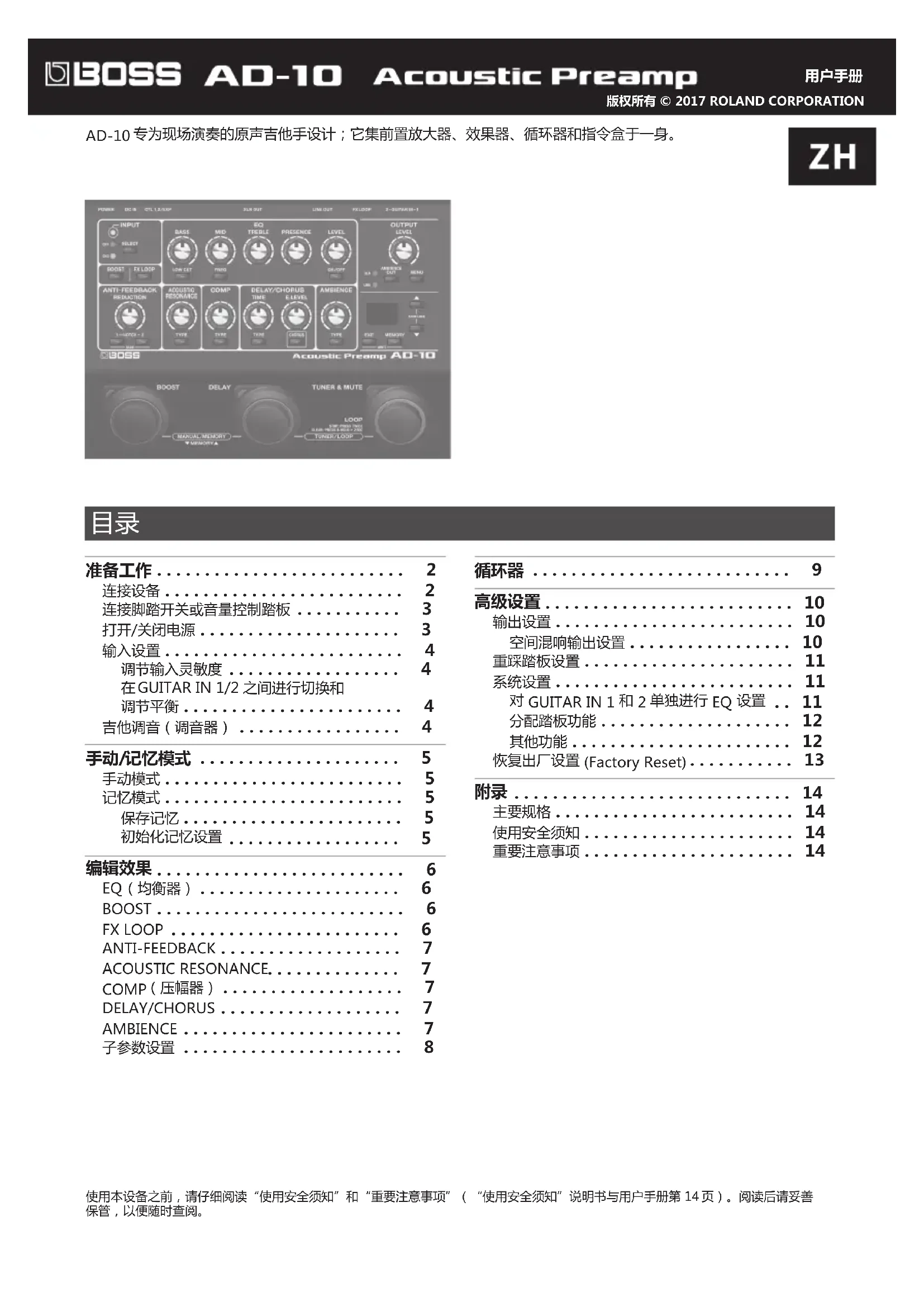 Retrouvez gratuitement la notice de l'appareil AD10 BOSS au format PDF.