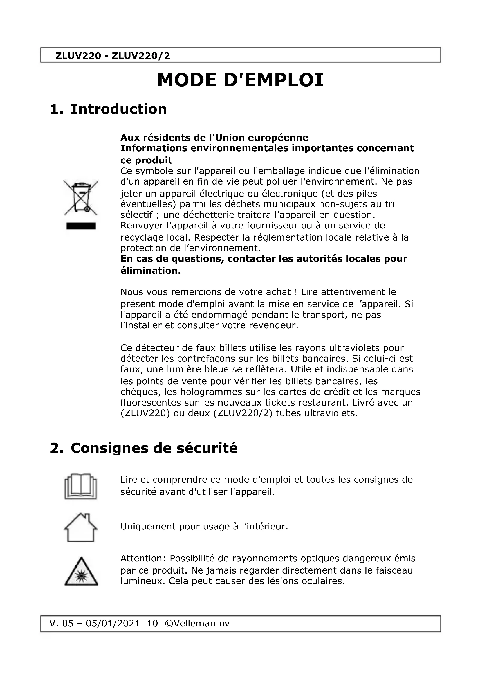 Retrouvez gratuitement la notice de l'appareil ZLUV2202 VELLEMAN au format PDF.
