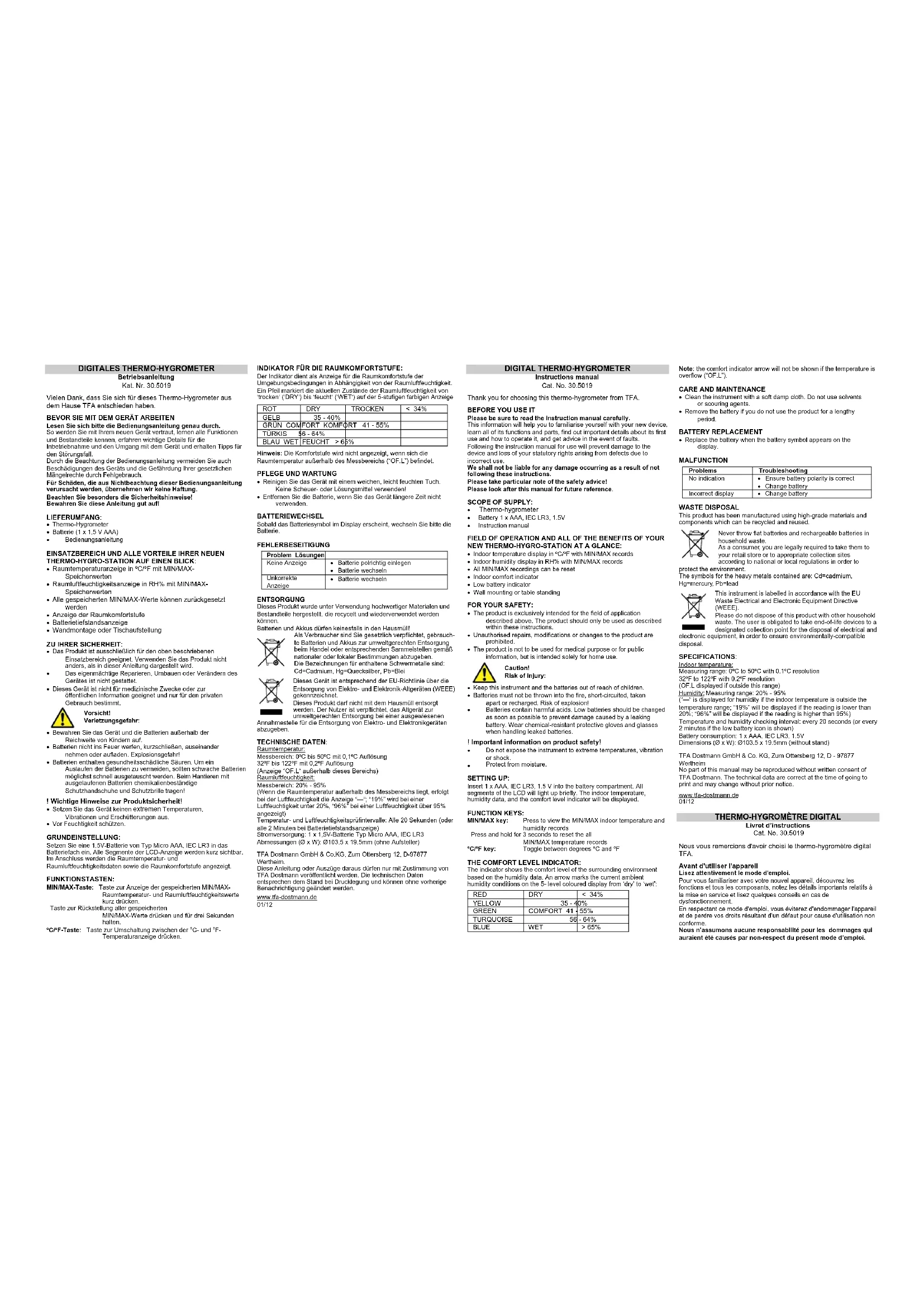 Nous vous remercions d'avoir choisi le thermo-hygromètre digital TFA.