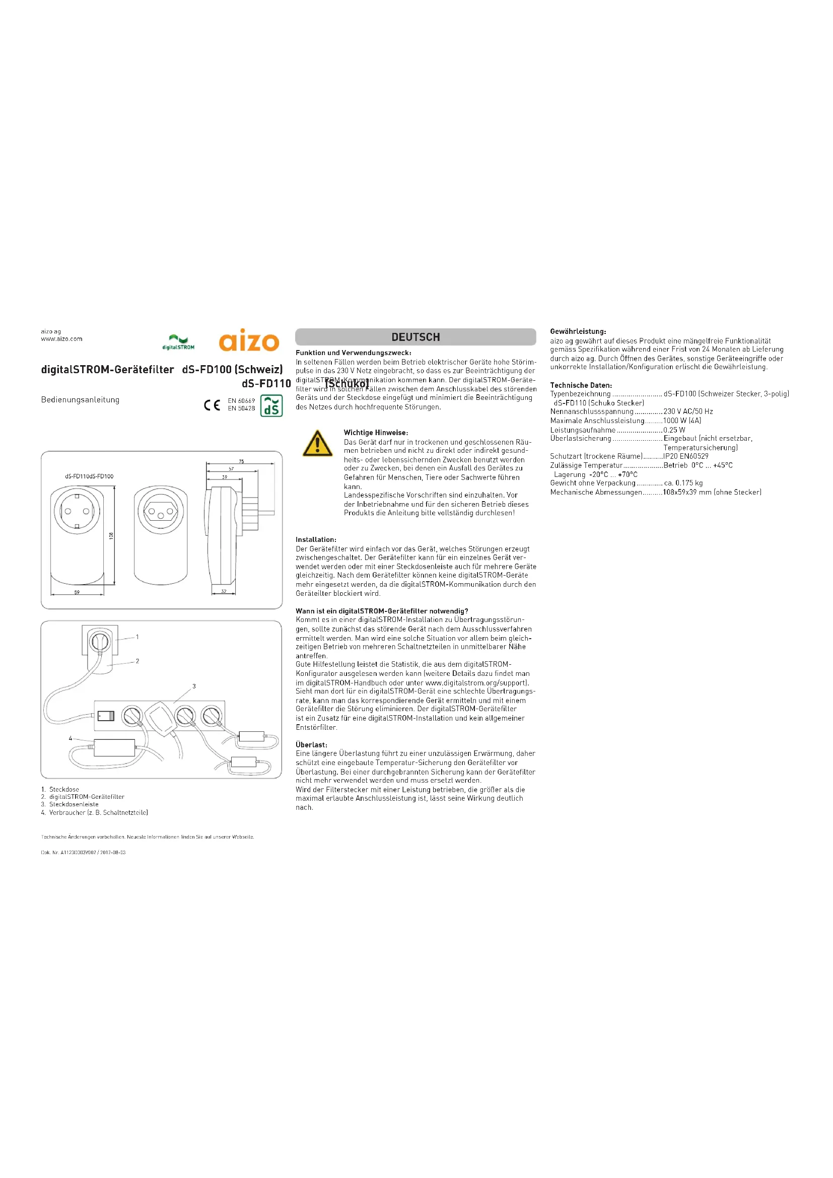 AIZO - Multiprise digitalSTROM - Notice d'utilisation et mode d'emploi gratuit