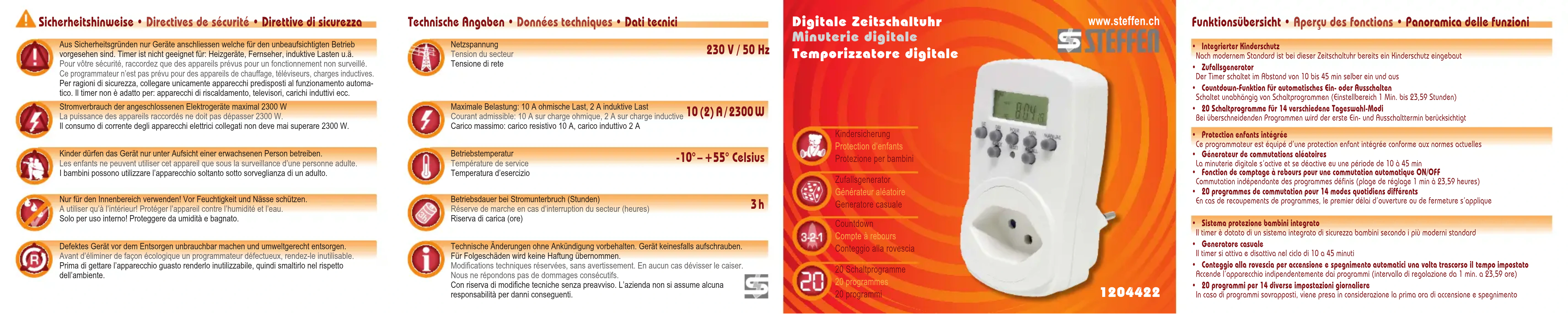 1204422 - Commutateur horaire numérique Steffen - Notice d'utilisation et mode d'emploi gratuit
