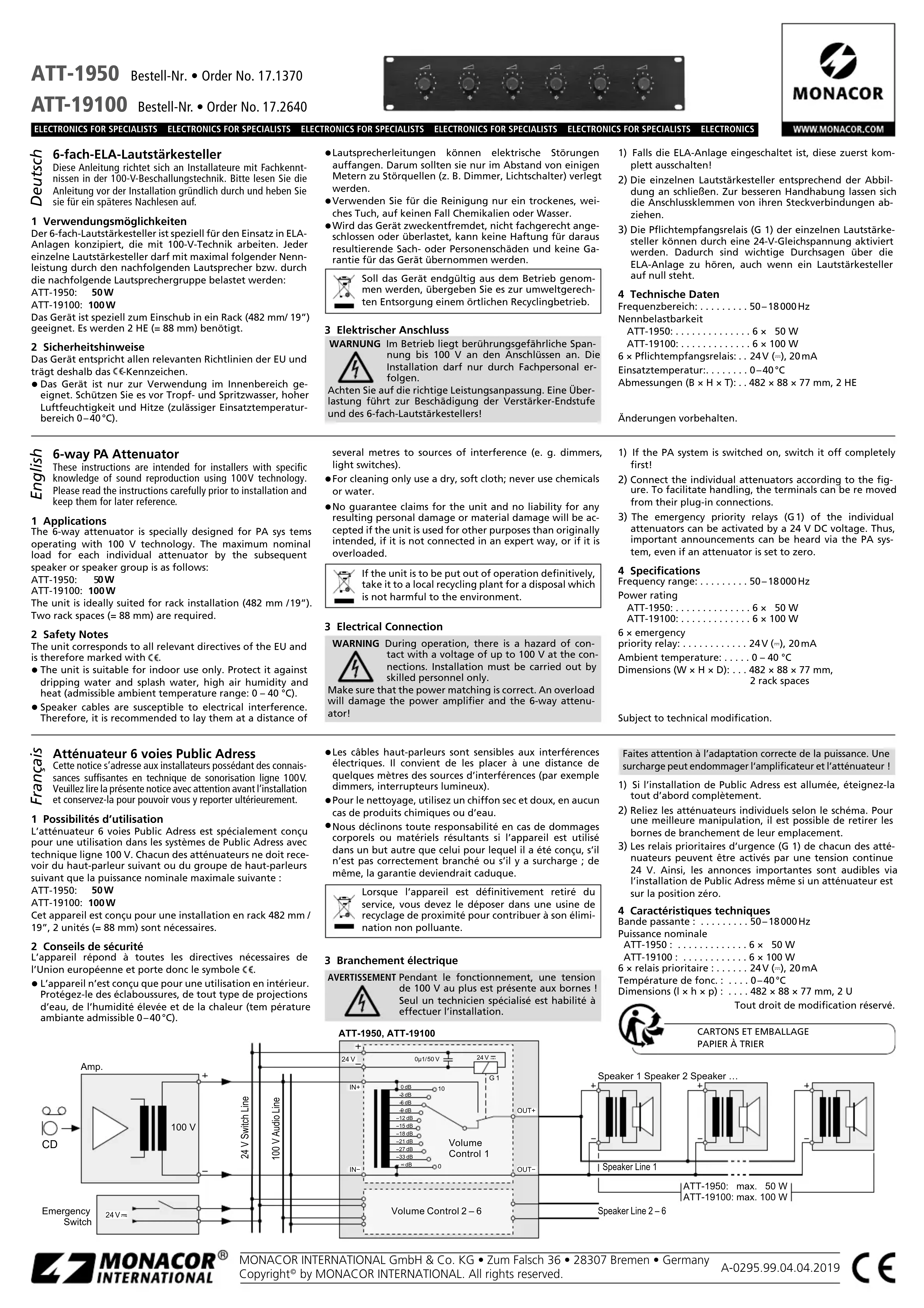 MODE D'EMPLOI ATT1950 Monacor