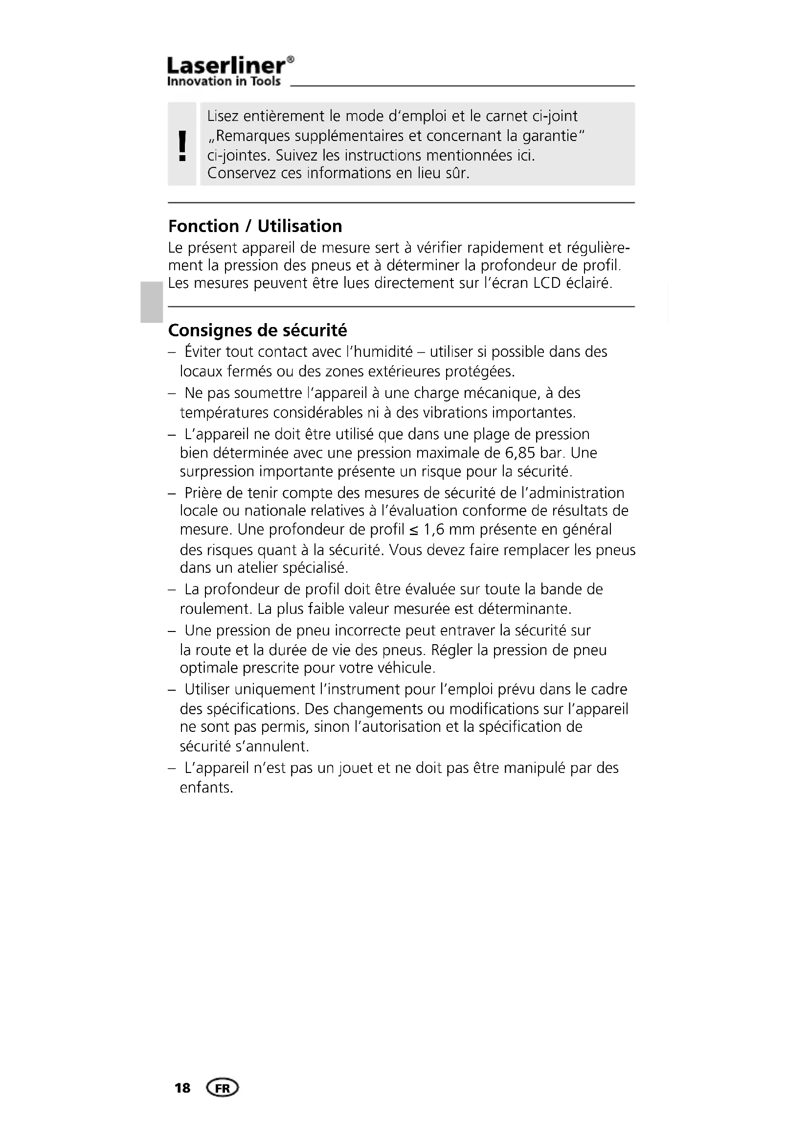 MODE D'EMPLOI TireCheck Laserliner