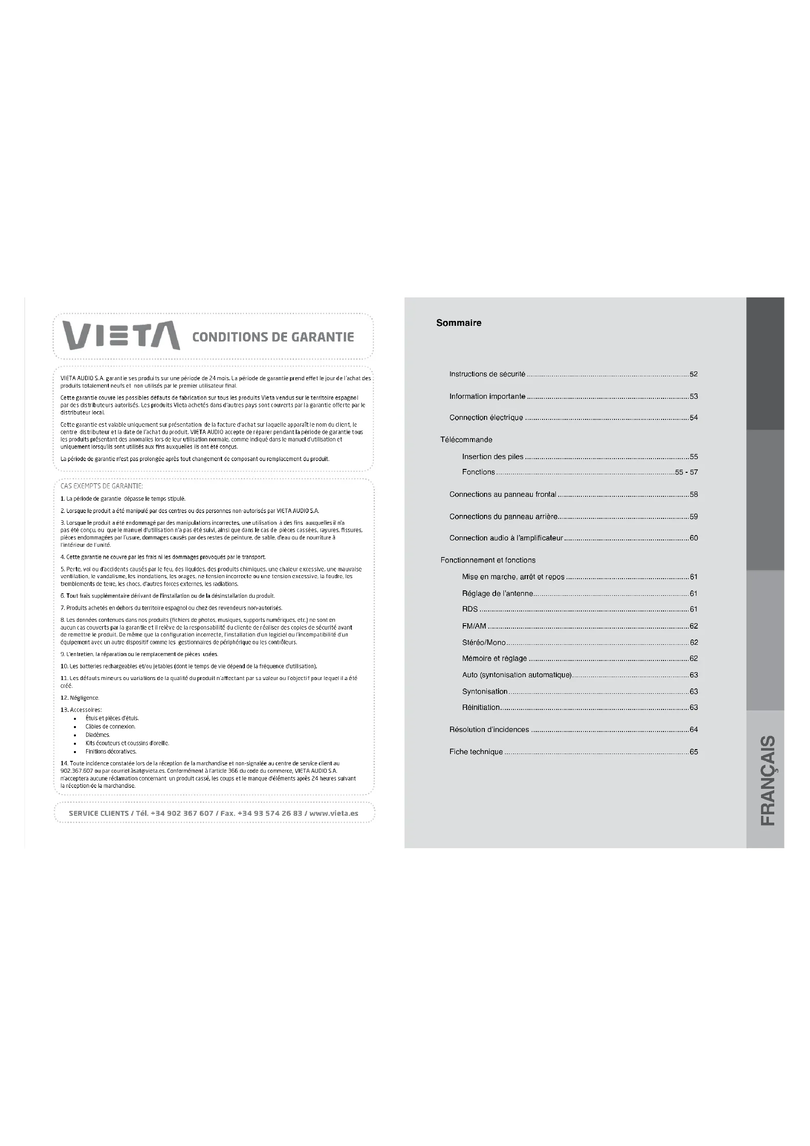 VIETA AUDIO S. A. garantie ses produits sur une période de 24 mois. La période de garantie prend effet le jour de l'achat des produits totalement neufs et non utilisés par le premier utilisateur final.