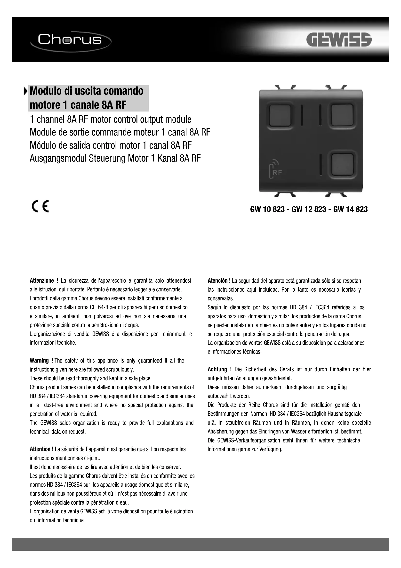Retrouvez gratuitement la notice de l'appareil GW12823 Gewiss au format PDF.