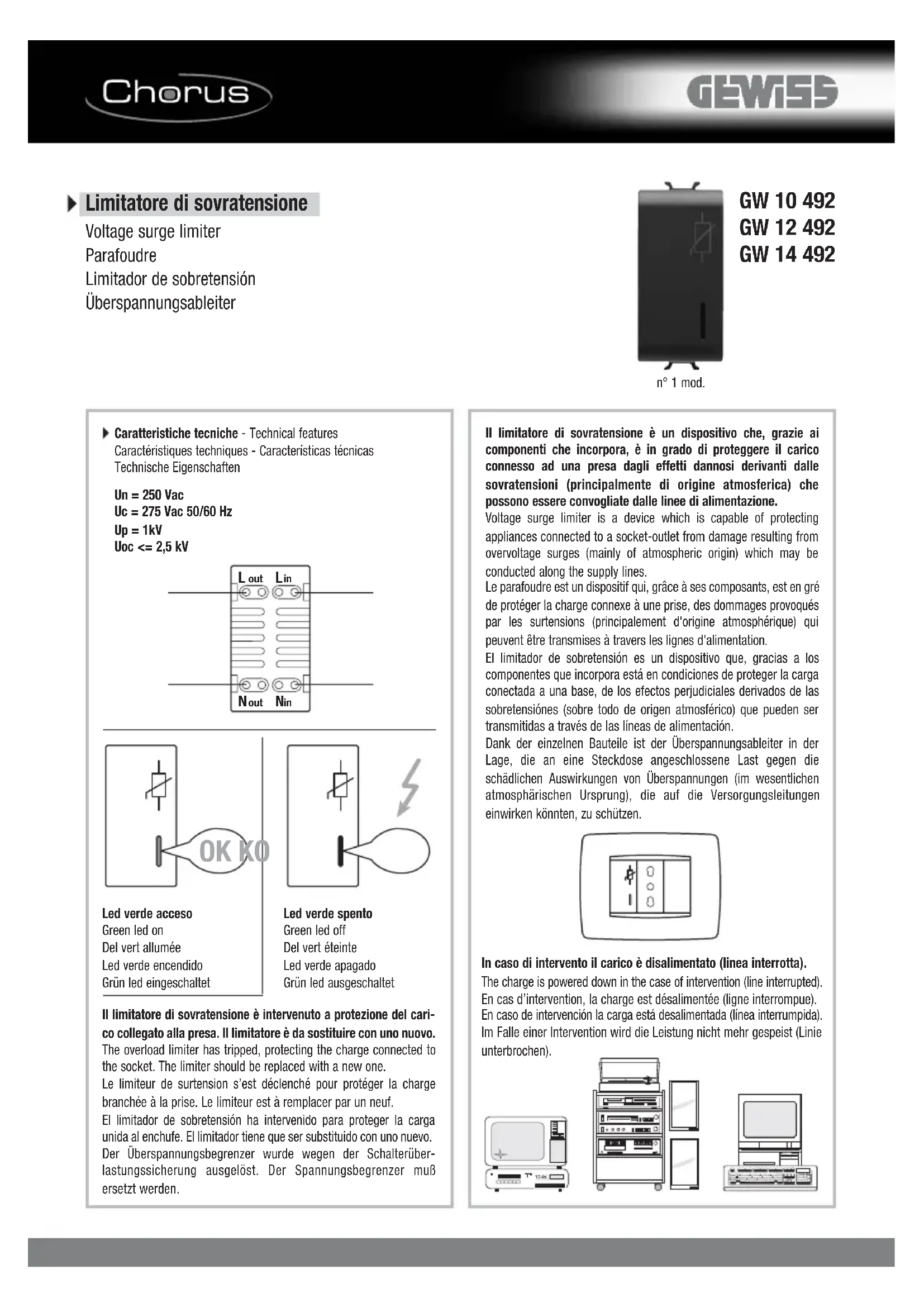 GW14492 - Parafoudre Gewiss - Notice d'utilisation et mode d'emploi gratuit