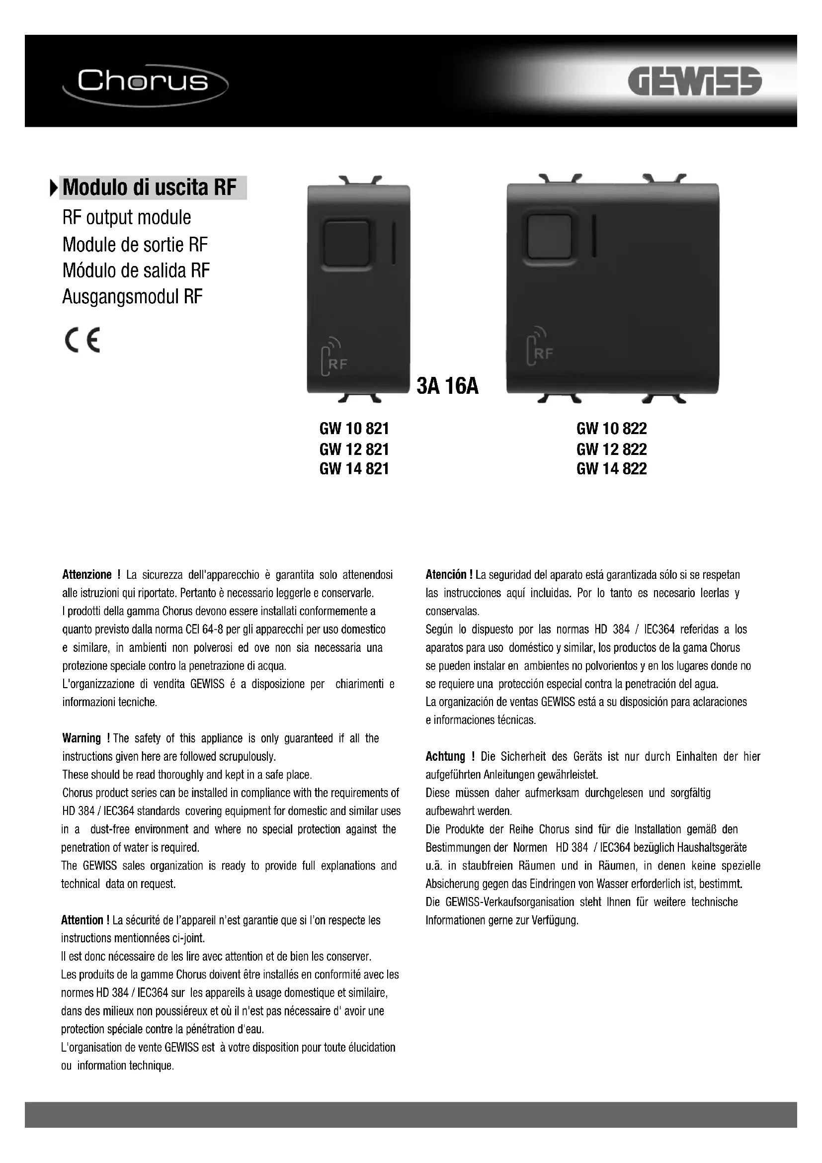 Retrouvez gratuitement la notice de l'appareil GW14821 Gewiss au format PDF.