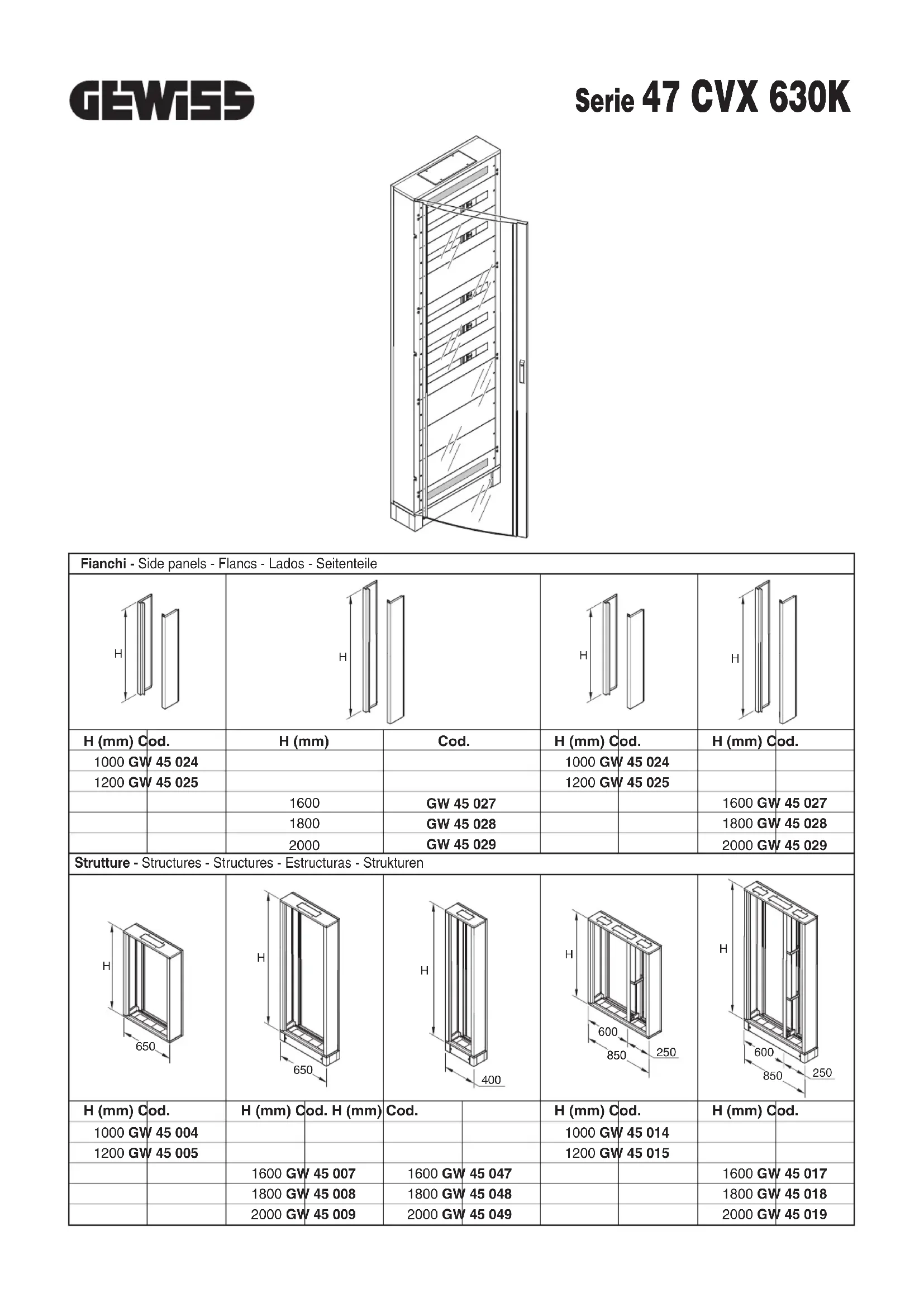 GW45008 - Tableau électrique Gewiss - Notice d'utilisation et mode d'emploi gratuit