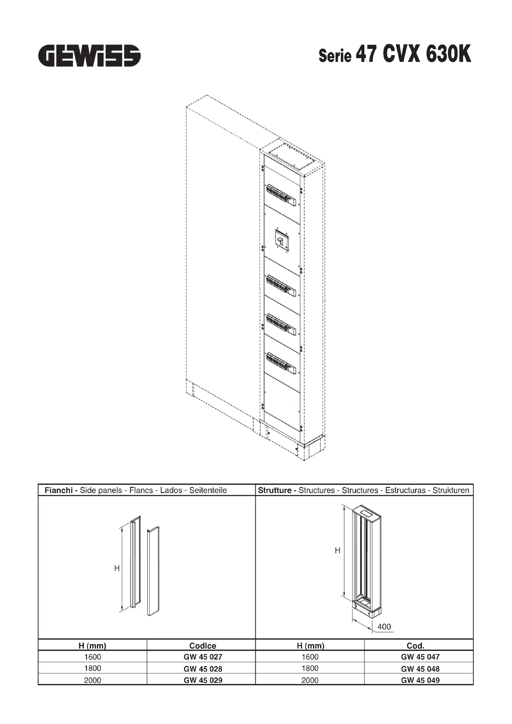 GW45299 - Tableau électrique Gewiss - Notice d'utilisation et mode d'emploi gratuit