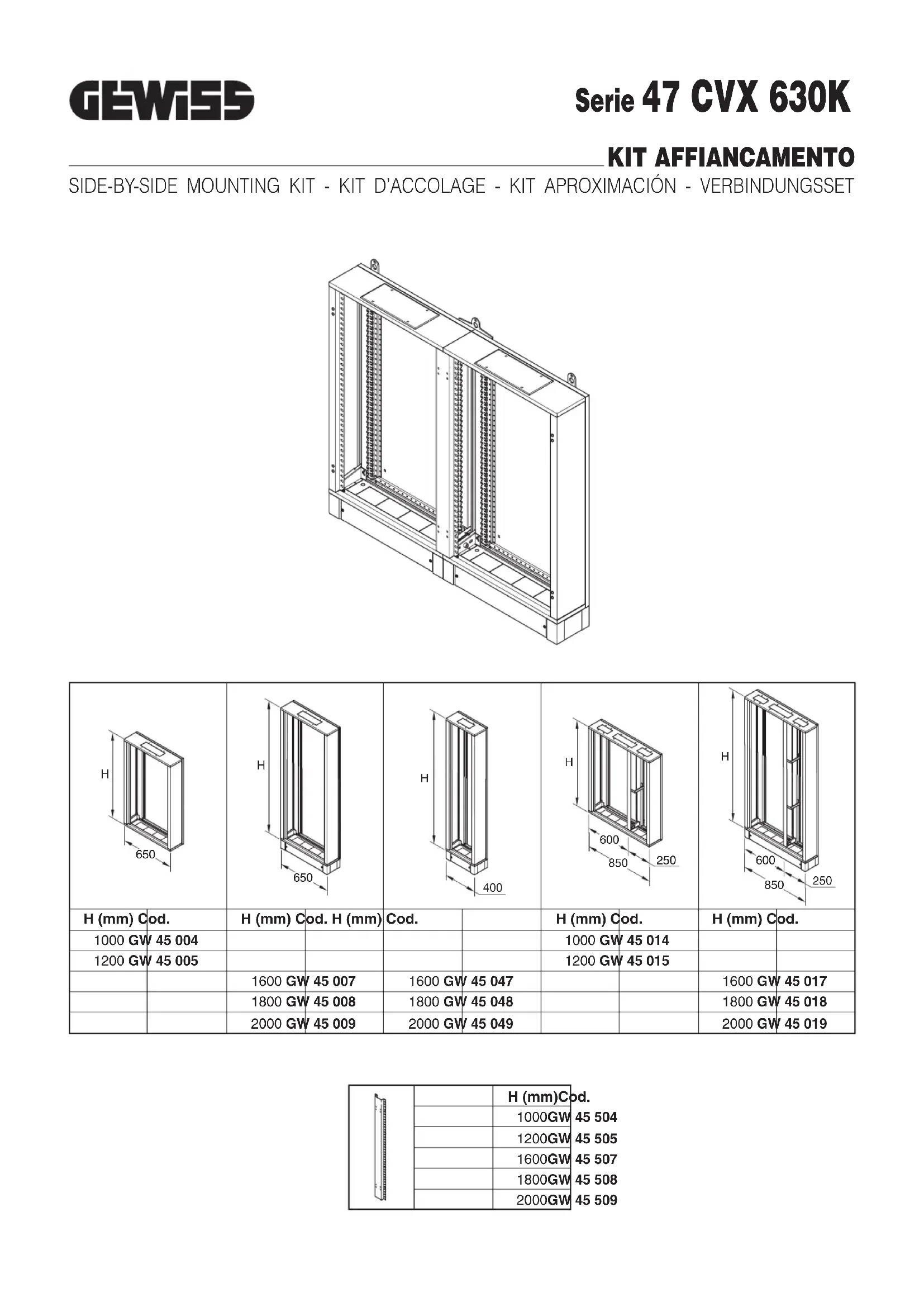 GW45505 - Armoire électrique Gewiss - Notice d'utilisation et mode d'emploi gratuit