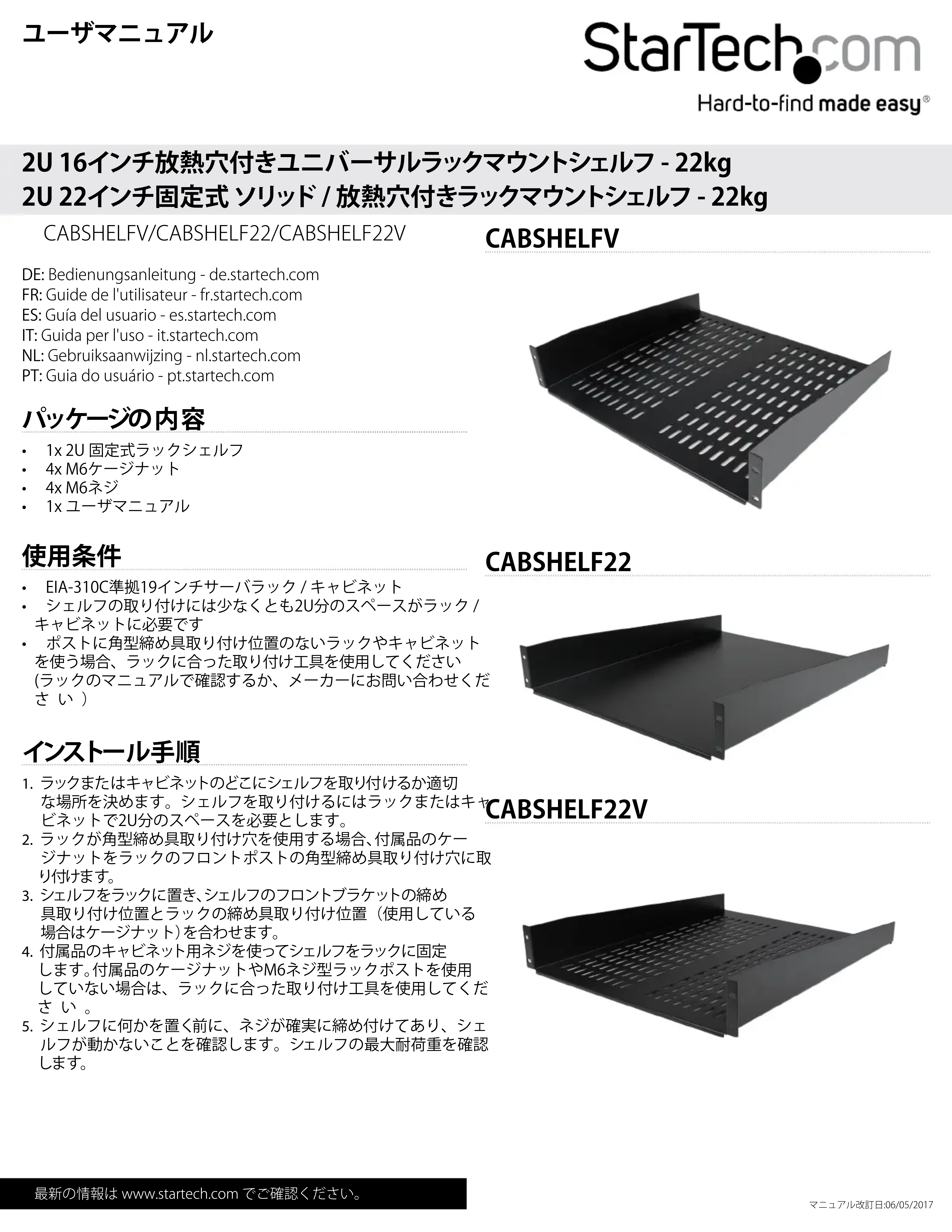 Retrouvez gratuitement la notice de l'appareil CABSHELFV StarTech.com au format PDF.