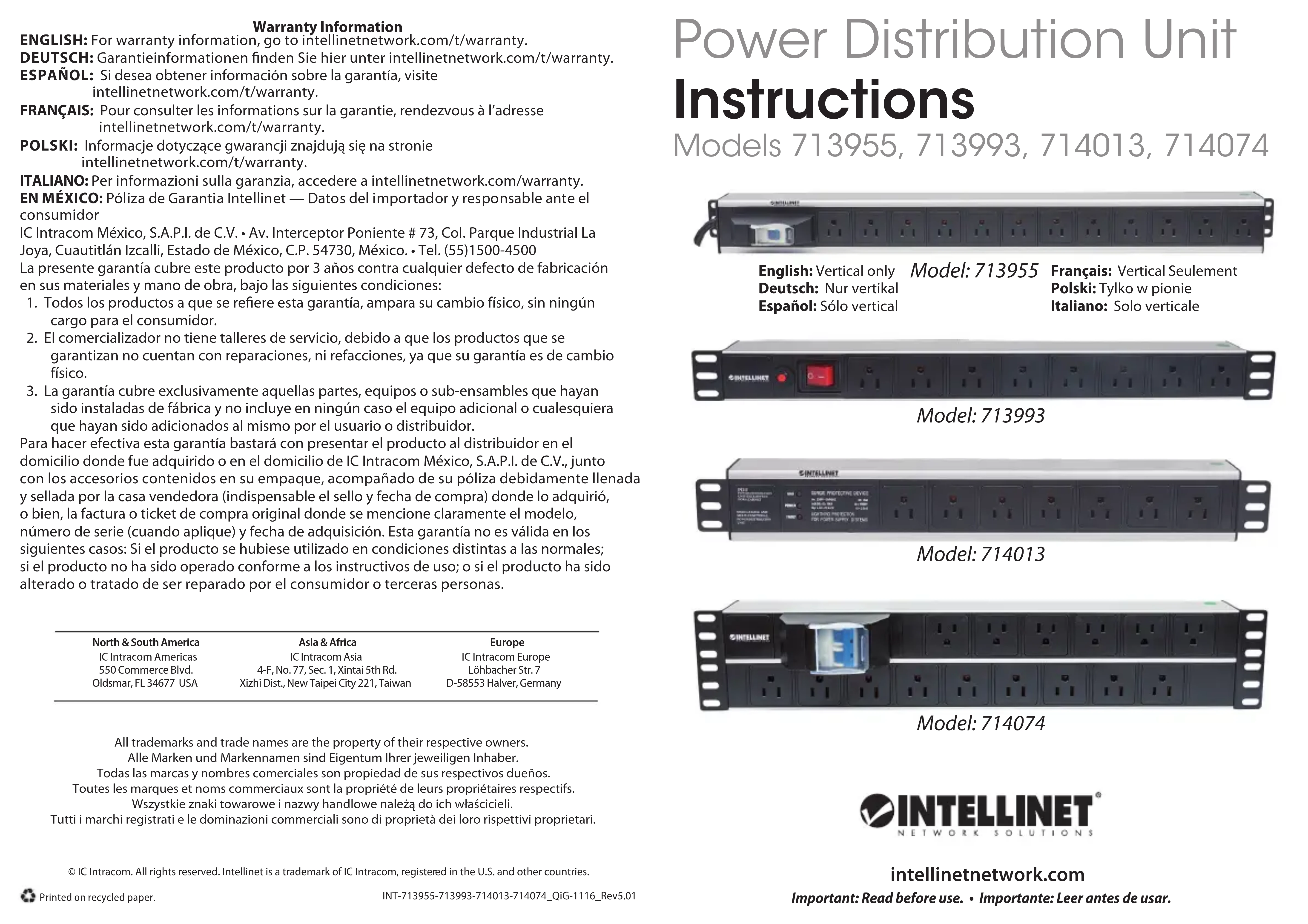 713955 - Multiprise Intellinet - Notice d'utilisation et mode d'emploi gratuit