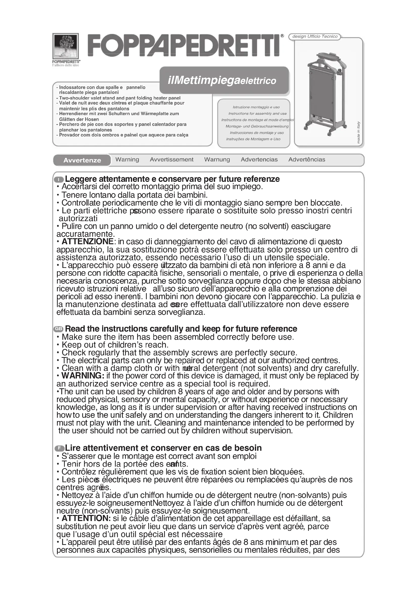 ilMettimpiega Electrical - Séchoir à linge électrique Foppapedretti - Notice d'utilisation et mode d'emploi gratuit