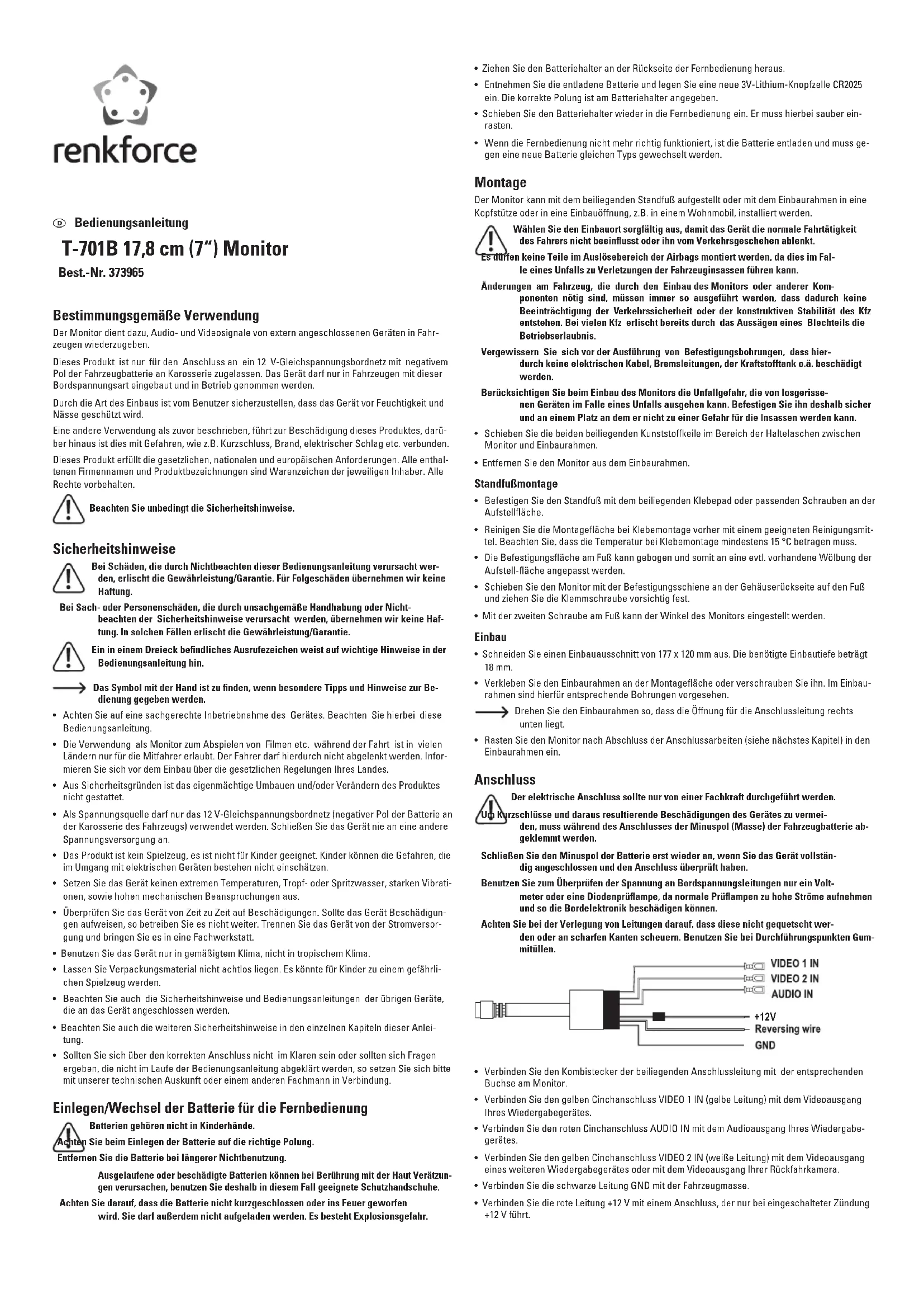 T701B - Moniteur Renkforce - Notice d'utilisation et mode d'emploi gratuit